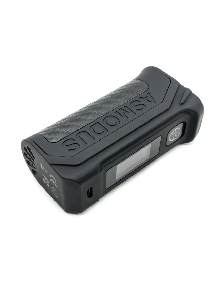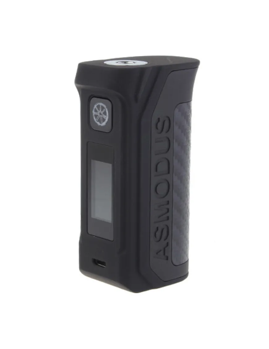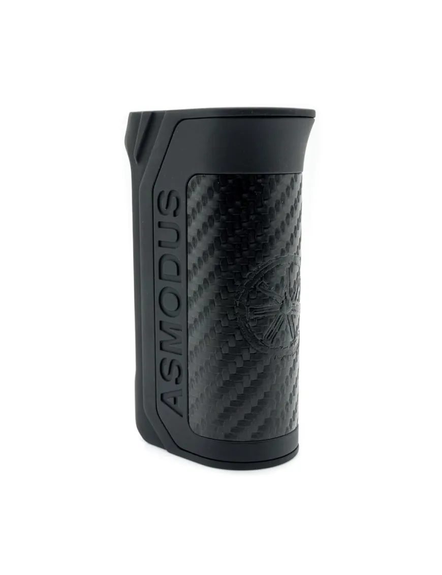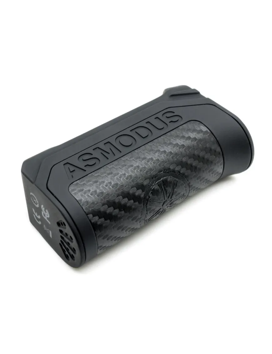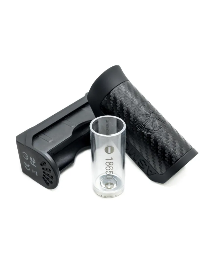 Asmodus Amighty 100W TC виконаний з цинкового сплаву із вставками з карбону і віддалено нагадує пістолетну рукоять, завдяки чому він дуже зручно сидить у руці. Подібна форма має одну особливість – проблем із натисканням кнопки «fire» не виникне, оскільки вона розташована чітко під вказівним пальцем.
