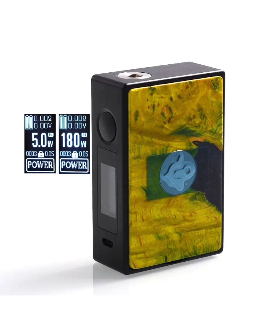 Каркас бокс мода виготовлений з легкого алюмінієво-магнієвого сплаву серії 6063 та доповнений бічними знімними панелями з полімеризованої деревини. На верхній платформі розташовується 510 конектор із позолоченим піном, який зміщений від центру мода.