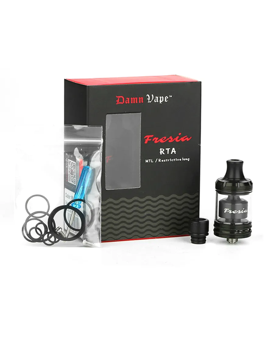 Damn Vape Fresia MTL RTA - бакомайзер, що обслуговується від молодої компанії Damn Vape, що є їх другим продуктом на ринку. Бакомайзер може зацікавити багатьох користувачів своєю унікальною універсальністю – це перший на ринку бакомайзер, який використовує дві роздільні схеми обдування, суміщені в межах однієї бази, перемикання між якими відбувається простим поворотом кільця забору повітря.