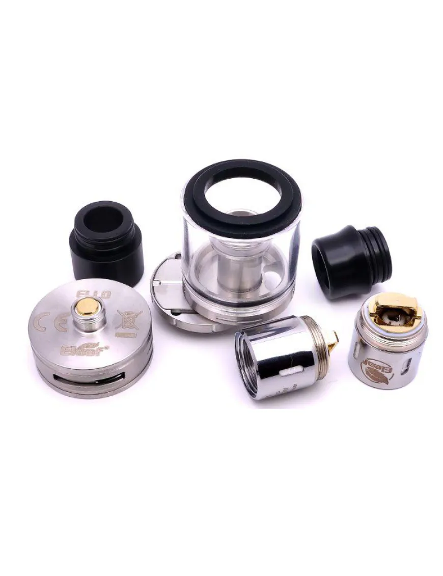 Пристрій можна розібрати на чотири частини: база атомайзера, змінний випарник, скляне тіло бака та топкеп із повітроводом;