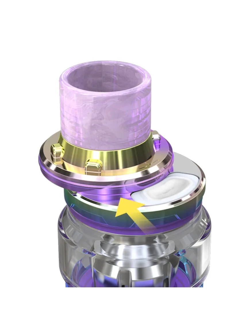ELLO Duro оснащений дріп-типом 810 стандарту. Верхня кришка має посадку під о-рингові дріп-типи. Отримати доступ до заправного отвору можна слайдом убік. Танк можливий двох типів об'єму на 2 мл та 6,5 мл рідини за допомогою Bubble скла.