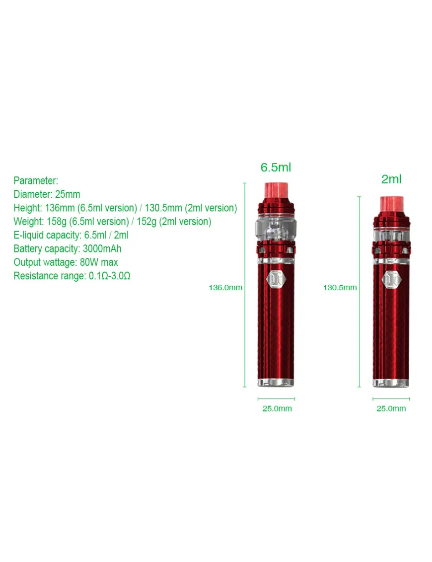 Мод оснащений вбудованим акумулятором на 3000 мАг. Максимальна вихідна потужність 80W. Кнопка Fire має світловий індикатор різних кольорів. Колір індикатора залежить від рівня заряду акумулятора.