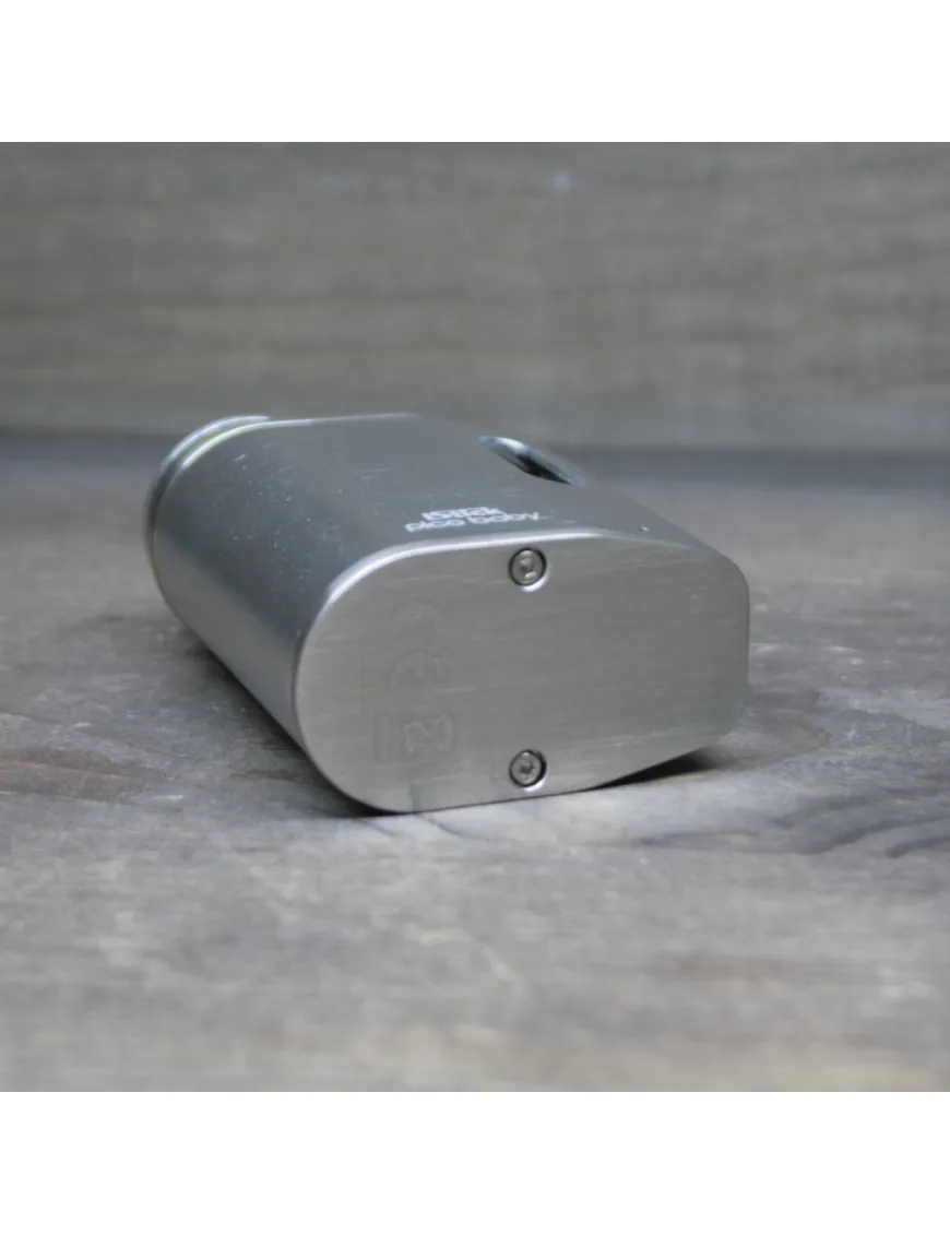 Зверху боксмоду розташована кнопка Fire з інноваційною системою блокуванням. З обох боків два отвори для контролю рівня рідини. У нижній частині micro-USB для заряджання.