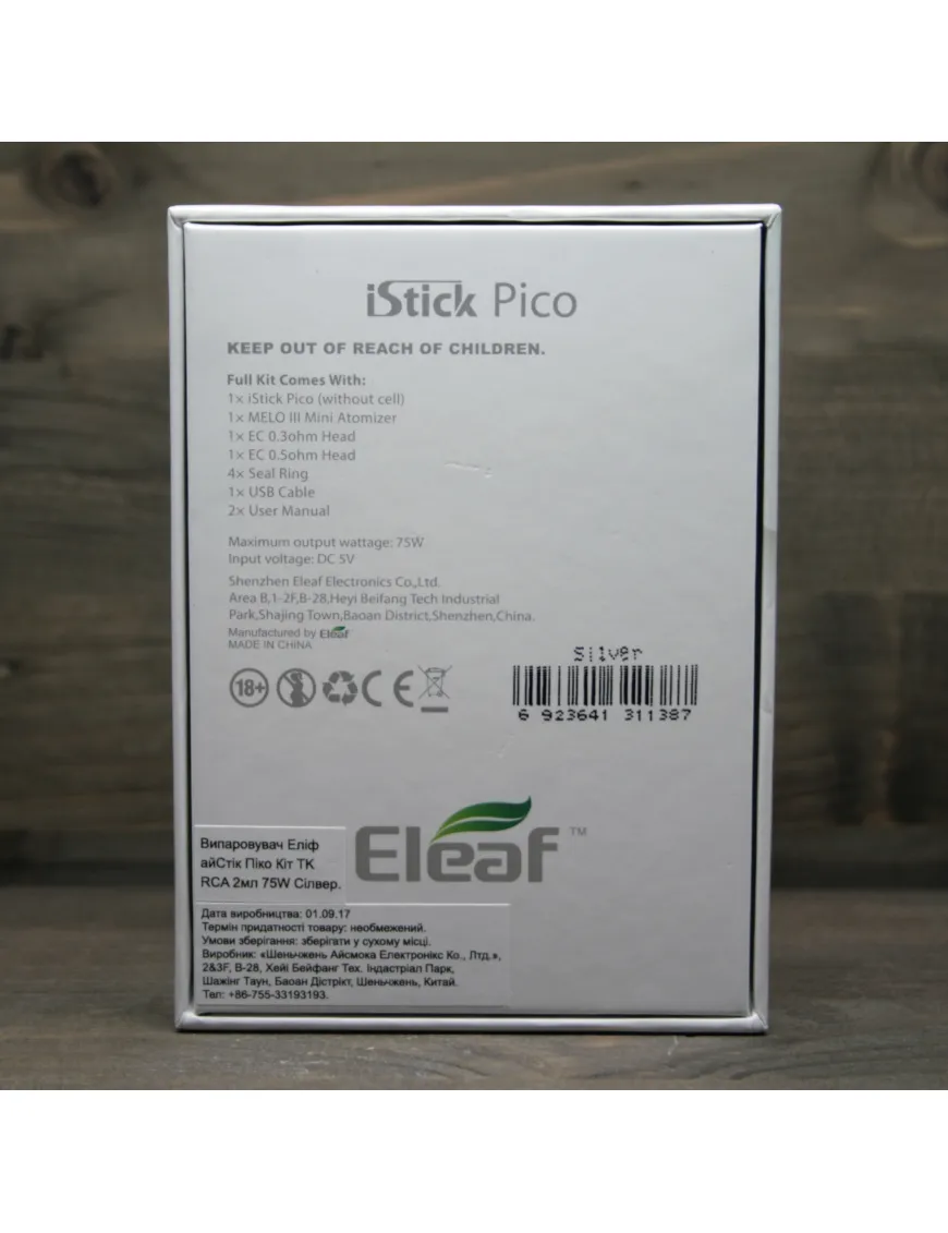 Eleaf - iStick Pico Kit - це оновлений стартовий набір, він додав потужність: тепер це повноцінні 75 w. Компанія Eleaf також залишила можливість роботи на стандартному акумуляторі 18650. Istick PIco залишився таким же компактним і зручним у користуванні пристроєм, відмінний зовнішній вигляд, на вибір 5 колірних рішень і хороша потужність у дійсно компактному пристрої. Istick Pico Kit підтримує режим температурного лімітування, дозволяє проводити заряджання акумулятора через USB роз'єм і можливість оновлення ПЗ.