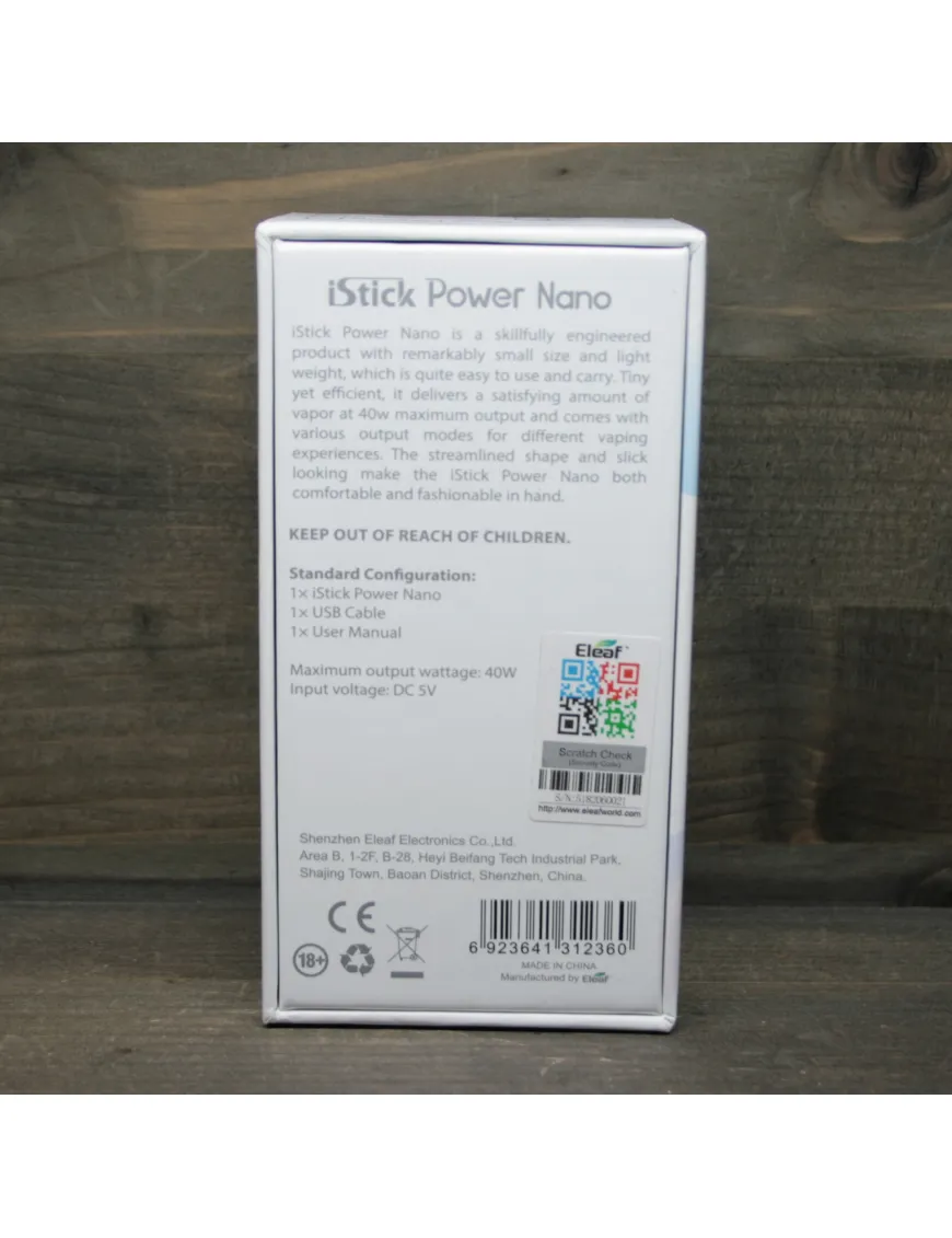 Електронна начинка боксмоду Eleaf iStick Power Nano працює в діапазоні потужності від 1 до 40 W – для моди цієї категорії цього цілком достатньо. Потужність пристрою дозволяє насолоджуватися щільною, смачною та насиченою парою.
