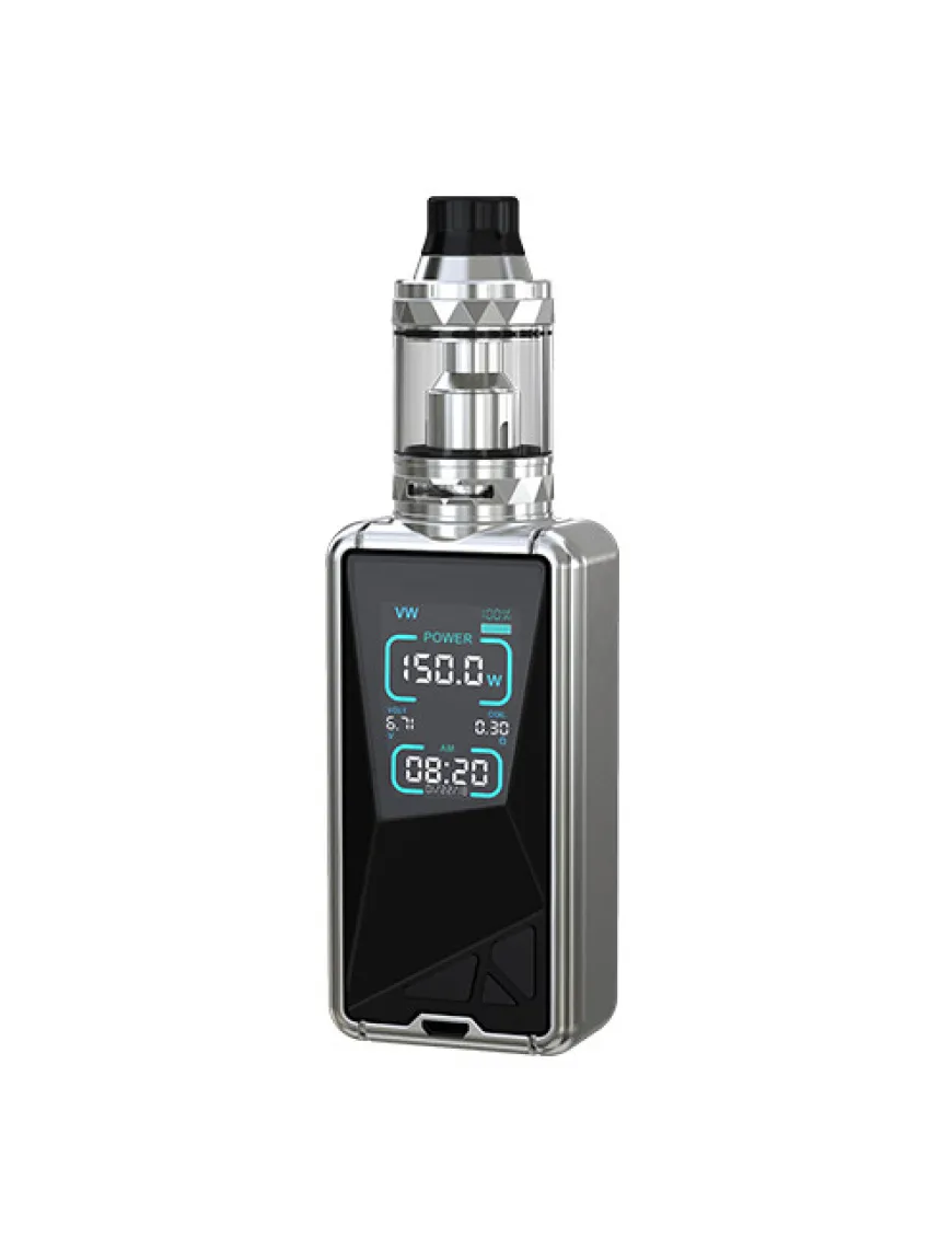 Цей набір складається з 150-ватного боксу мода характерної форми та кліромайзера ELLO ємністю 4 мл з верхньою заправкою. У комплекті поставляються випарники на 0,25 та 0,3Ом. Живлення забезпечується вбудованим акумулятором ємністю 3400 мА-год, також є підтримка Passthrough, що забезпечує можливість ширяння одночасно із зарядкою акумулятора. Підтримуються всі сучасні режими – байпас, варіват та термоконтроль з налаштуванням температурного коефіцієнта TCR. Екран має велику діагональ – 1,45”, на вибір доступні 5 колірних тем. Є можливість оновлення прошивки, що дає нові можливості для ширяння. Це відмінний варіант для вейпера-початківця або просунутого - зручний і в міру потужний.