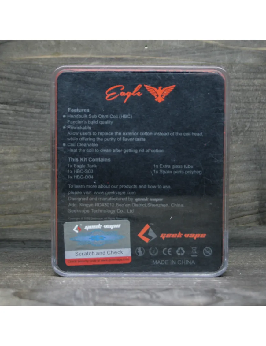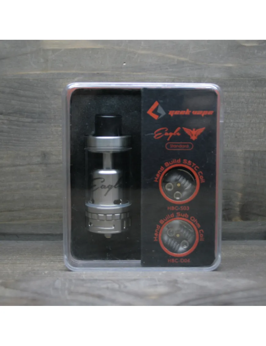 GEEK VAPE - популярний у вейперів виробник пристроїв для ширяння. Їх розробки славляться придатним навалом, стильним дизайном та потужністю. EAGLE RTA TANK - стильний чорний бак, виготовлений зі сталі. Він дозволяє отримувати відмінний смак від жижі та видавати великі клуби пари. На корпусі вигравірувано назву компанії та емблема.