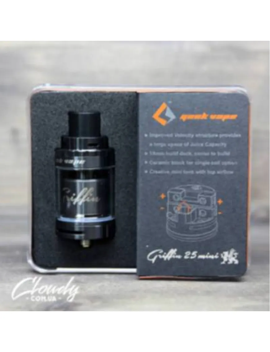 Geek Vape Griffin Mini 25 – атомайзер, адресований досвідченим вейперам, які мають достатньо часу на встановлення спіралей, повноцінне обслуговування.