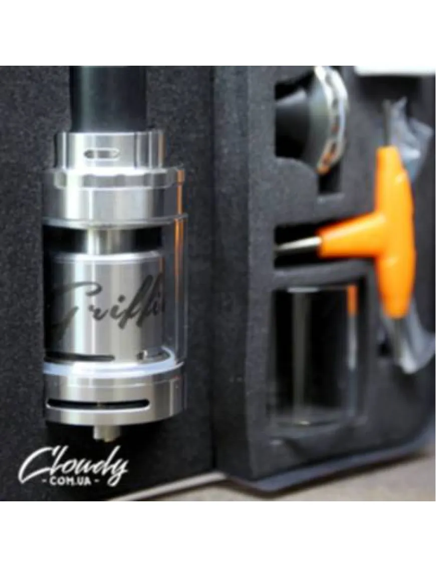 GRIFFIN MINI 25 – це покращена версія популярного бака, лише у зменшеному форматі. У цьому баку вдосконалили базу - дві стійки типу велосипеда, що дозволяє намотувати будь-яку спіраль. Відстань між стійками - 18 мм, це дозволяє розмістити будь-яку намотування. При цьому вона не зменшує обсягу бака.