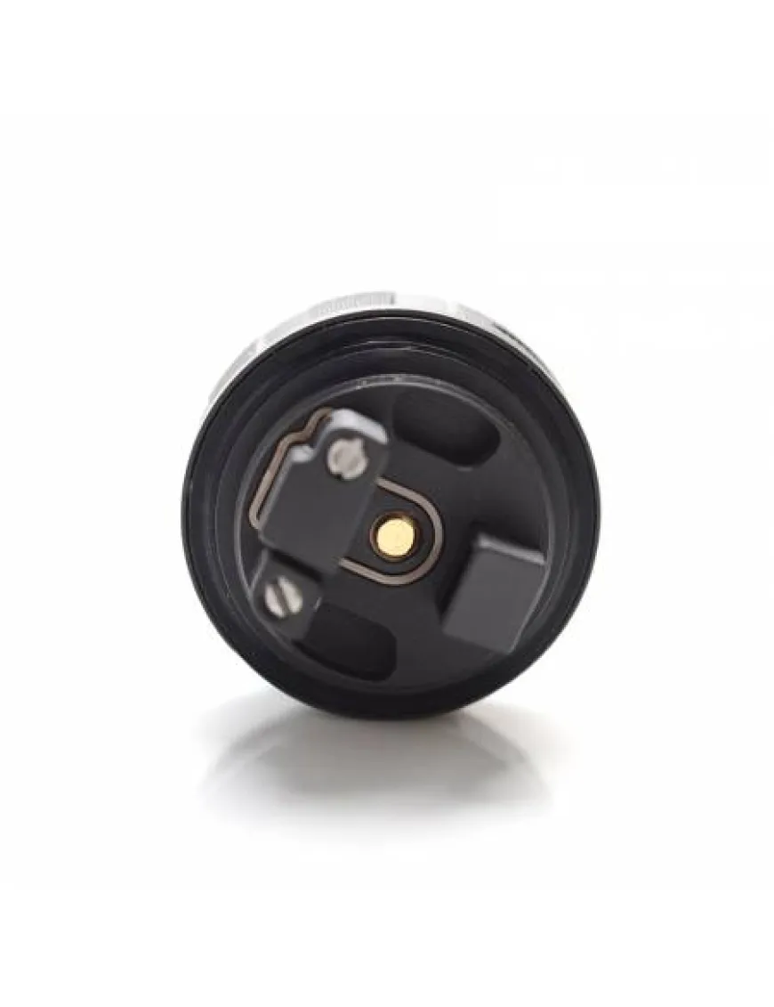 База Hellvape Destiny RTA двостійкова, зі зміщеними до краю стійками, причому одна зі стійок досить широка, але це зрозуміло, тому що в ній знаходиться одне з отворів обдування. Отвори для ніжок спіралі розташовані трохи під кутом, причому це пояснюється дуже просто – встановлювати койл дуже зручно, а після встановлення необхідно просто підігнути спіраль донизу.