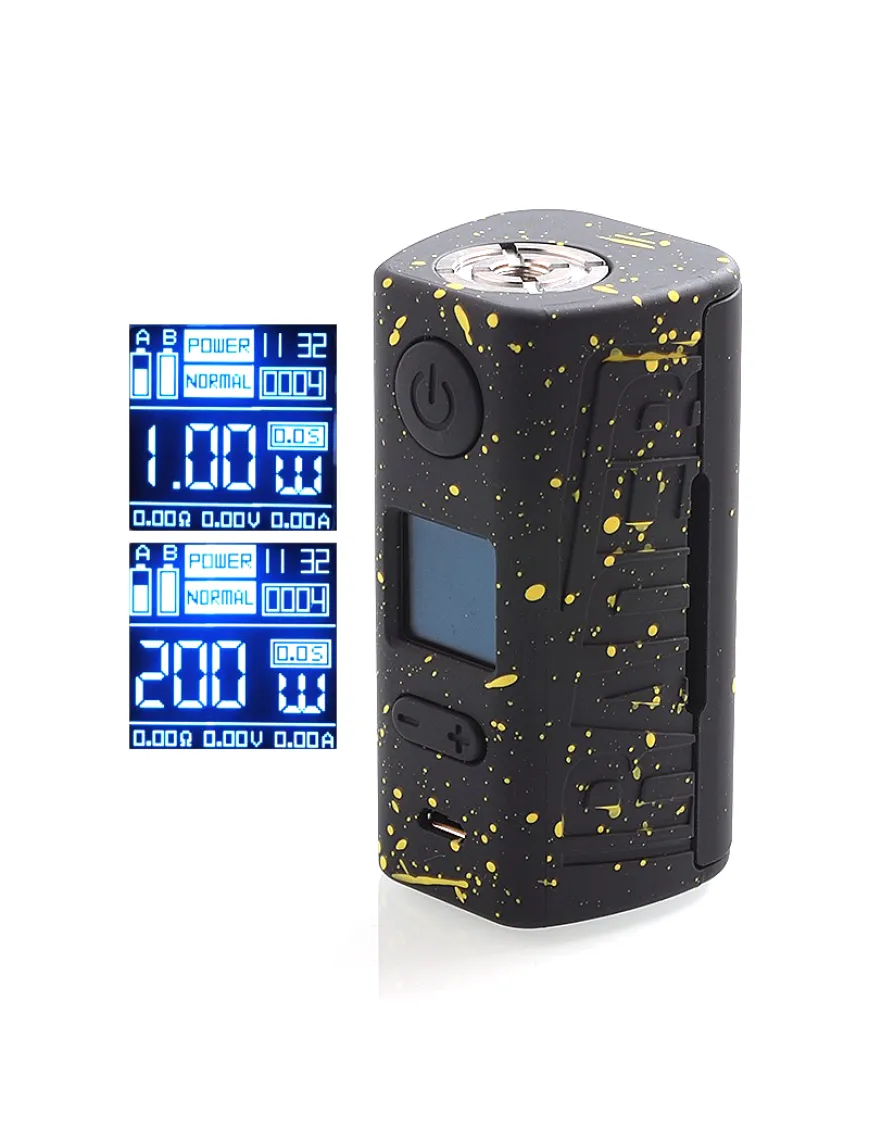Плата пристрою живиться від двох акумуляторів 18650 і здатна віддати від 1 до 200 ват, а також впоратися з опорами від 0.06 до 3.0 Ом. Працює плата в режимах VW, VV, ByPass (режим мехмоду), TC та Curve (режим кривих), де можна самостійно відбудувати потужність на різних проміжках затягування. У режимі VV доступний розбіг від 6,2 до 8,4 вольт.