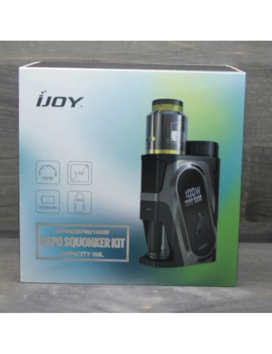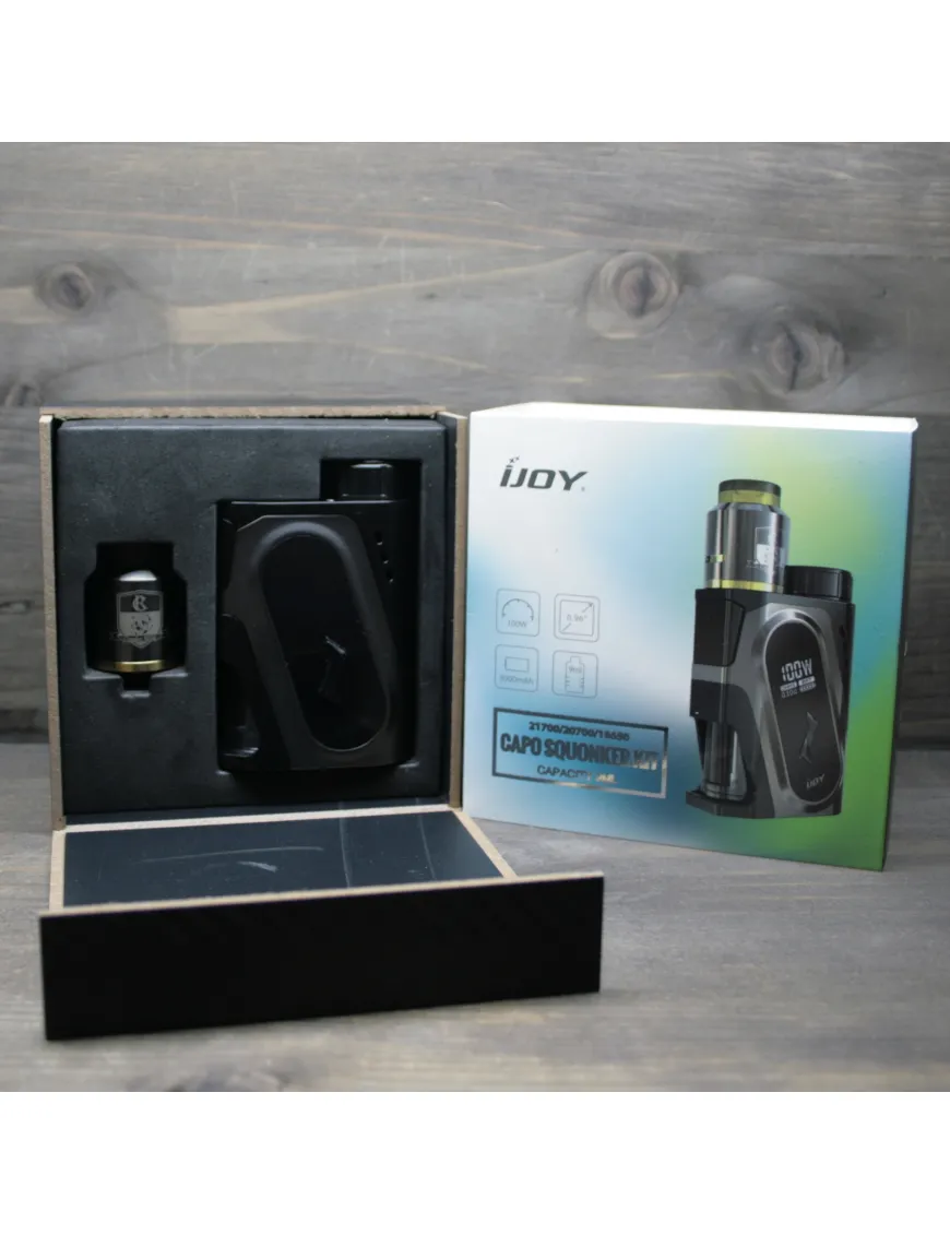 Комплект iJoy CAPO Squonker це ідеальний пристрій для вейперів-початківців, які хочуть спробувати боксмод з нижньою подачею рідини. Великий обсяг флакона для рідини, відмінна продуктивність з максимальною віддачею в 100 ВТ. Поверхня напівглянсова. отже слідів відбитків пальців у ньому залишається.