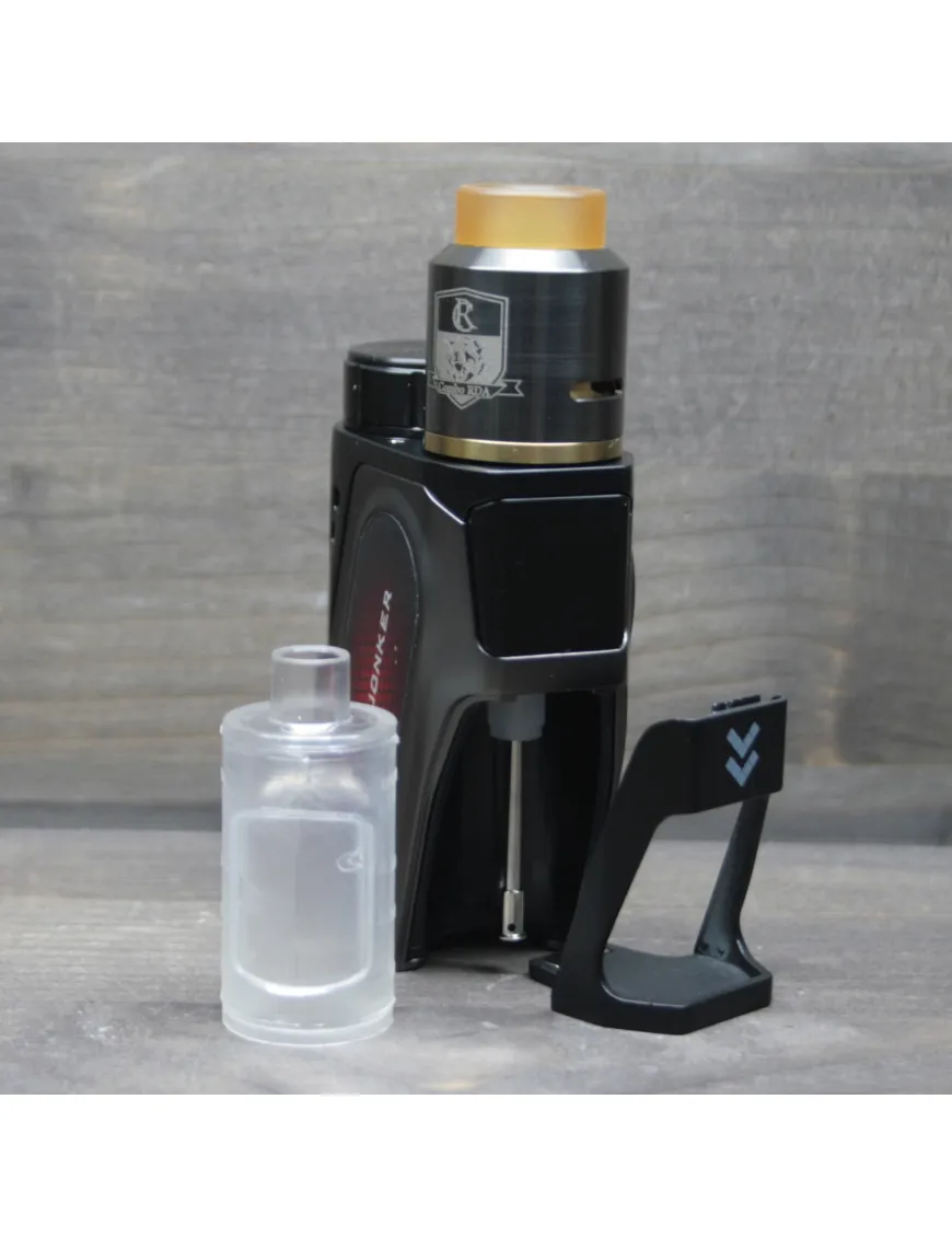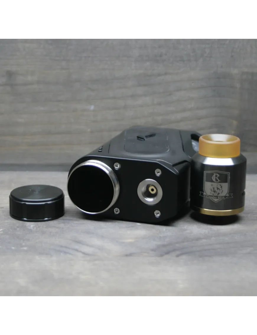 На боці є гравіювання логотипу у вигляді ведмедя, що реве, і напис Combo RDA. Зверху на куполі знаходиться посадкове місце без орингового 810 дрип-типу. Купол завтовшки 1 мм виконаний з анодованого металу і проблем з фарбою не повинно бути.