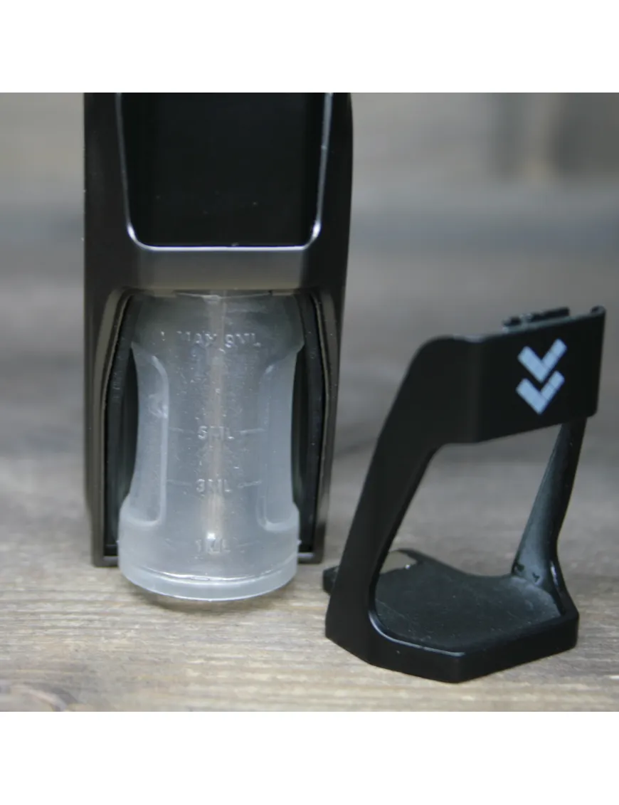 В комплект входить запасний флакон для рідини. На кришці відсіку з флакончиком зроблено отвір для зручного натискання.