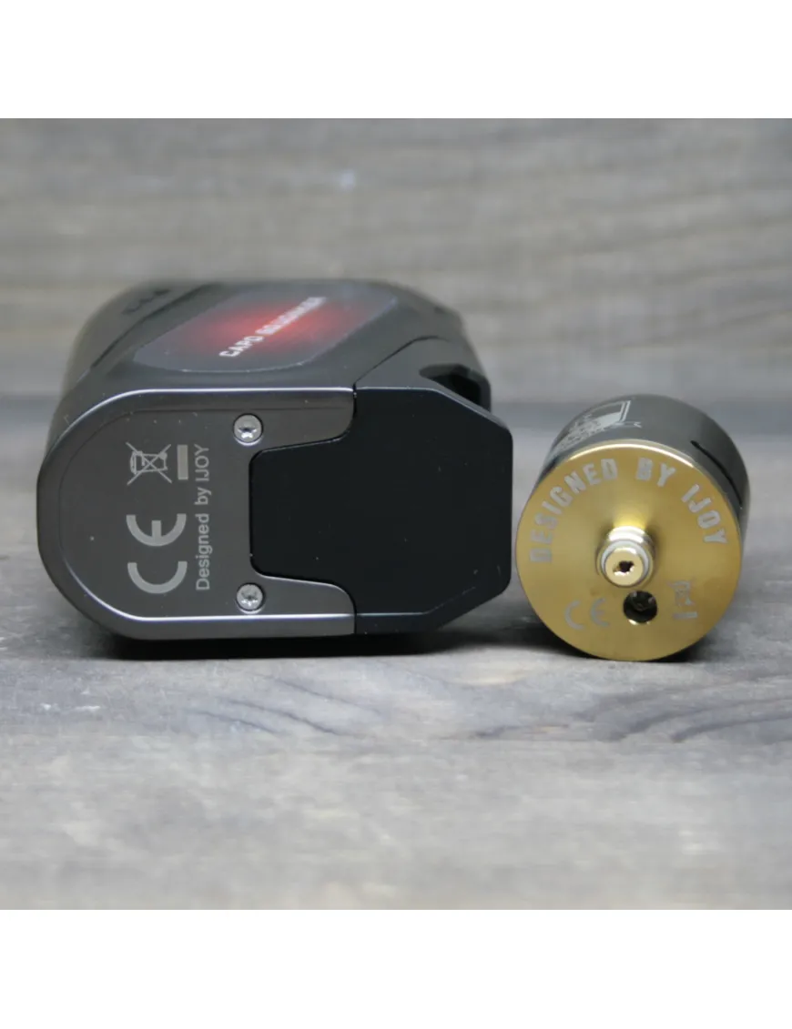 Боксмод працює від одного акумулятора 20700 або 18650 з перехідником (Акумулятор не входить в комплект, перехідник з логотипом Ijoy поставляється в комплекті). Кришка акумуляторного відсіку на різьбленні, встановлена у верхній частині сквонк-мода.