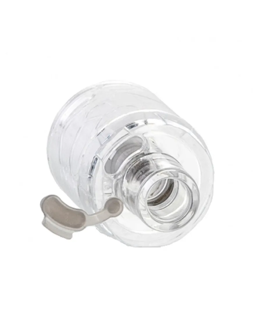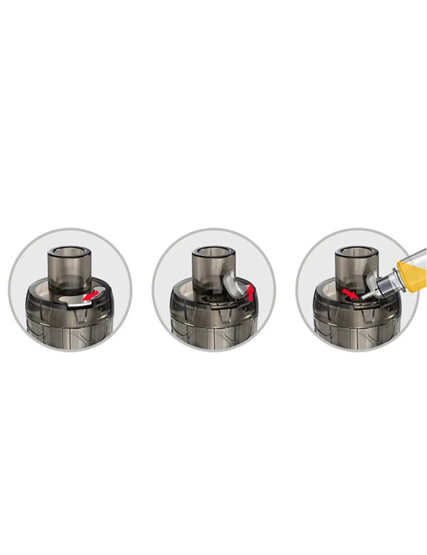 Заправка – зверху, отвір для додавання рідини – один, досить просторий, закритий силіконовою заглушкою. Кільце налаштування обдування можна сплутати з колбою бака, адже воно займає весь простір від верхньої кришки до бази.
