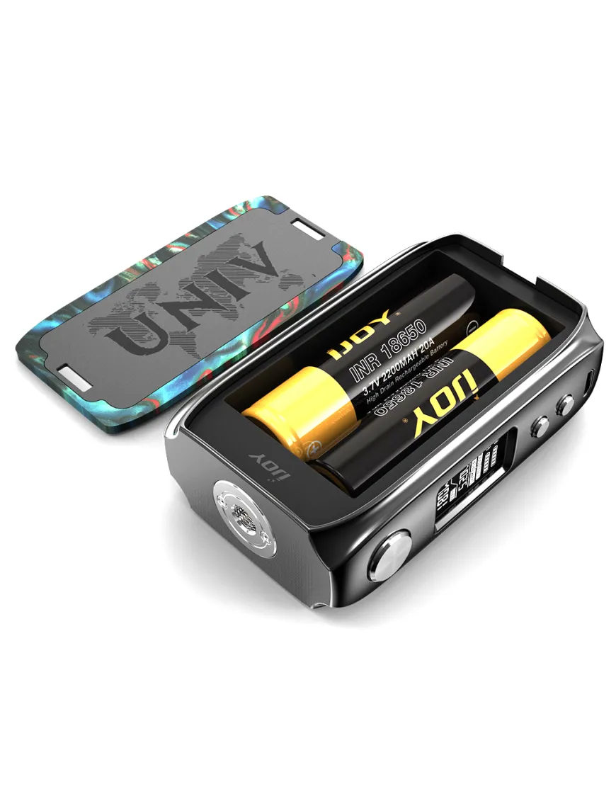 Під однією з кришок Shogun Univ ховає відсік для 2 акумуляторів 18650, за допомогою яких мод розвиває потужністю 180 ват.
