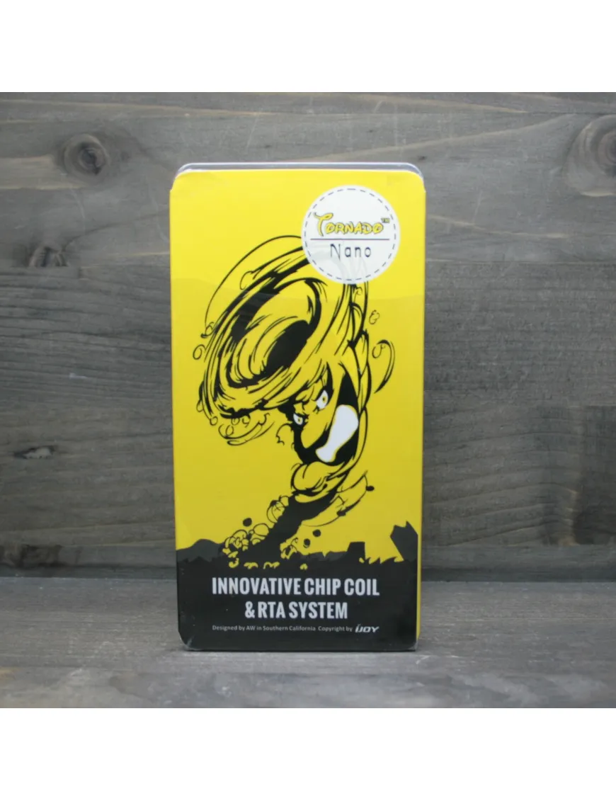 IJOY - TORNADO NANO навалистий бак, який дозволяє ширяти в режимі чотирьох і шести спіралей. Виробник реалізував швидку заміну ватки. Фортеця затяжки можна регулювати за допомогою спеціальних кілець.