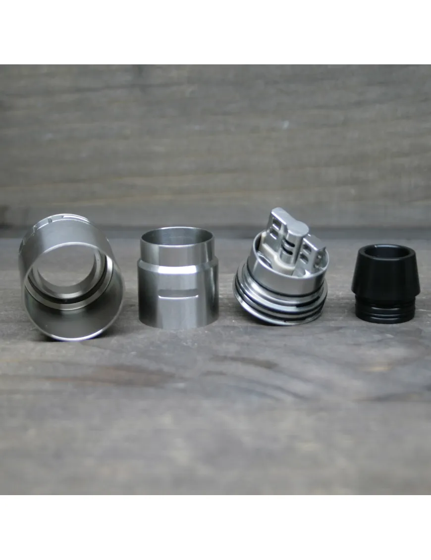 Дріпка зібрана з 3 частин: удосконалена база атомайзера, топ-кеп з регульованим верхнім обдуванням та спідниця камери випаровування. Усередині встановлені стійки Velocity для самостійного накрутки спіралей. У стійках є 2 отвори для кріплення спіралей великої товщини – їх діаметр становить 2 мм. Також його можна використовувати в стані без стійкості.