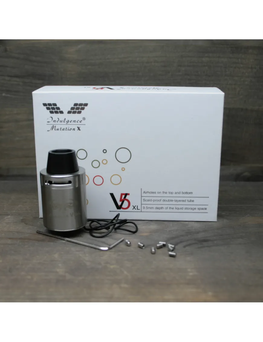 Дріпка Indulgence mutation XV5 срібного кольору – це п'ята модифікація легендарної дріпки від виробника Indulgance, за допомогою якої ви можете випускати величезні клуби ароматної пари. Дана модель підійде для професіоналів, які самі люблять намотувати спіраль, оскільки вона повністю розбірна та обслуговується.