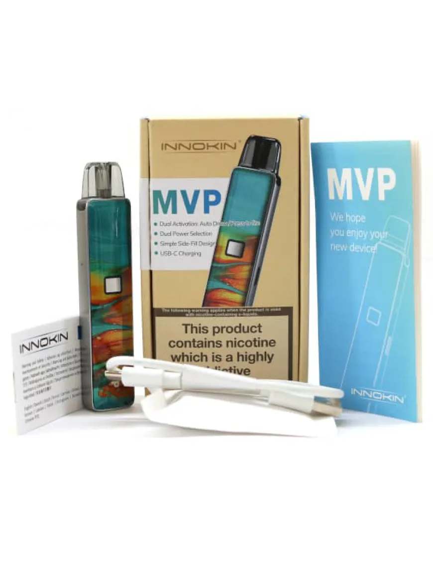 Innokin MVP Pod Kit – компактна Pod система з двома режимами роботи, оснащена вбудованим акумулятором середньої ємності, розрахована на використання змінних картриджів із вбудованими випарниками.