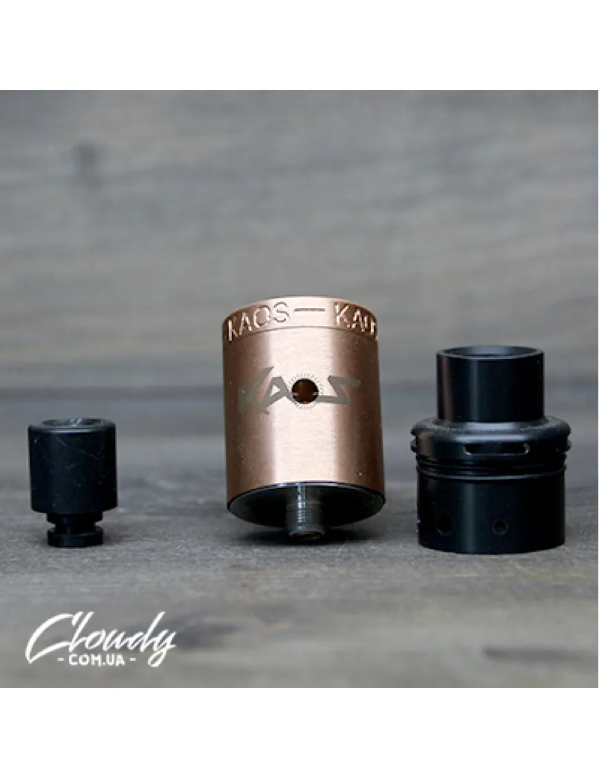 У ньому реалізовані не банальні стійки типу Velocity, які стоять практично в кожній дріпці, а тут встановлені 3 стійки. І це не обмеження вашого польоту фантазії в намотування спіралі, навпаки, ви можете продати ще більше. Це досягається і за рахунок великого діаметра пристрою – 24 мм. Отвір для обдування добре вписалося в букву O у слові Kaos.