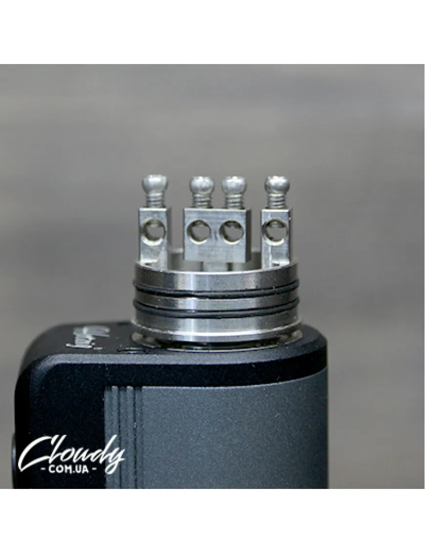 Конструкція дріпки у розборі не має нічого нового. Зате до комплекту входить додатковий токеп, з великим дриптипом, у якому є верхній отвір для подачі повітря. Отвори для кріплення спіралей завтовшки 3 мм дозволяє вам накрутити навіть саму товсту спіраль. А здвоєна центральна стійка допоможе здійснити задумане.