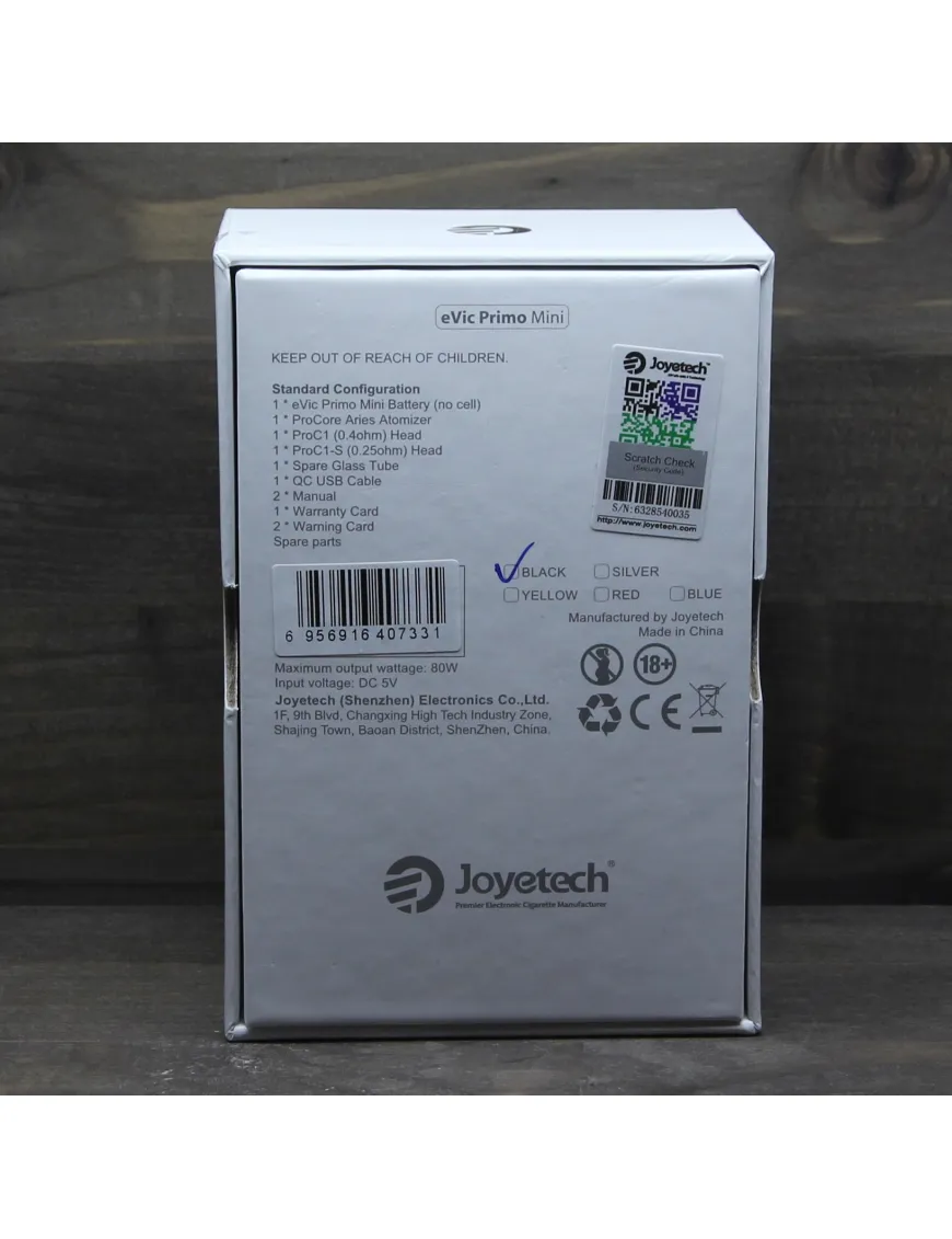 Joyetech - eVic Primo Mini Kit 80W виконаний зі сплаву цинку та нержавіючої сталі, поверхня гладка та не має гострих кутів. Бічні панелі та одна із сторін мають вінілову вставку з імітацією карбону.