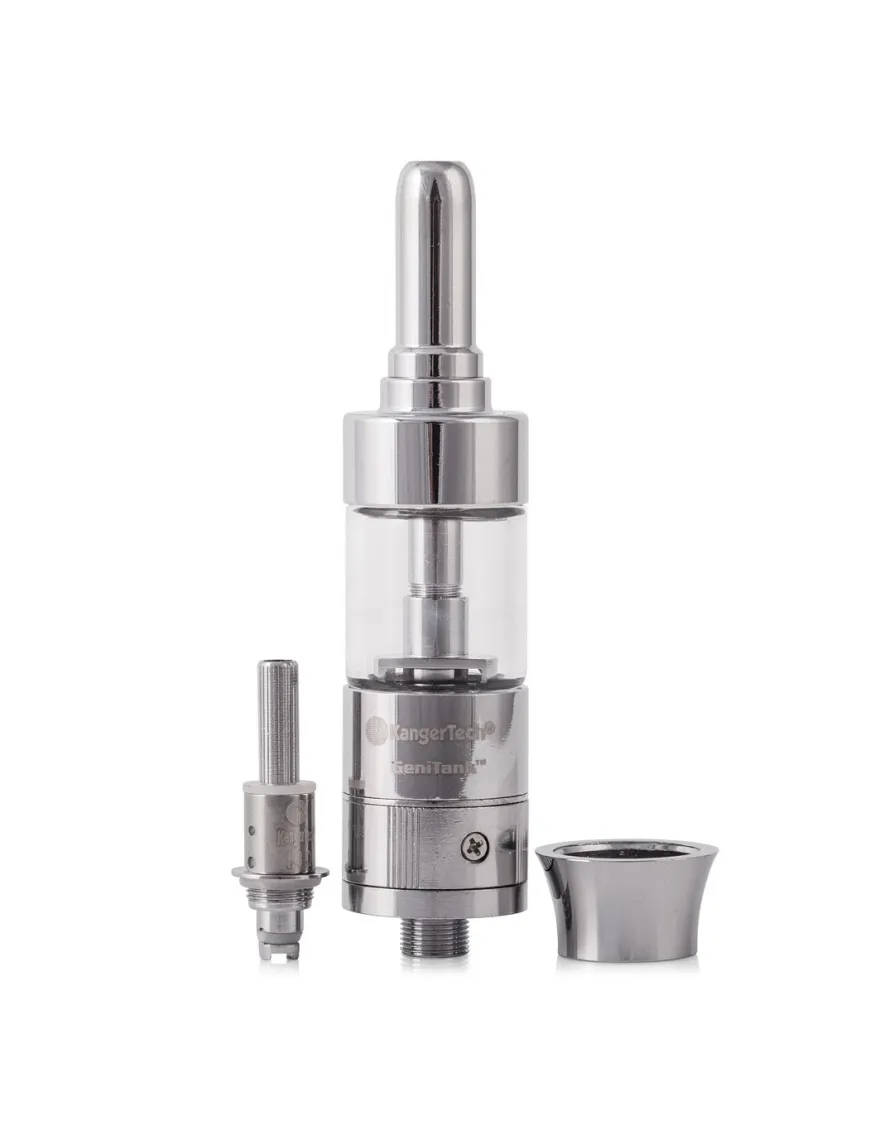 KangerTech GeniTank - кліромайзер від компанії Kangertech з баком на 2,4 мл рідини, в якому застосовано технологію регулювання повітряної тяги в поєднанні з двоспіральними випарниками.