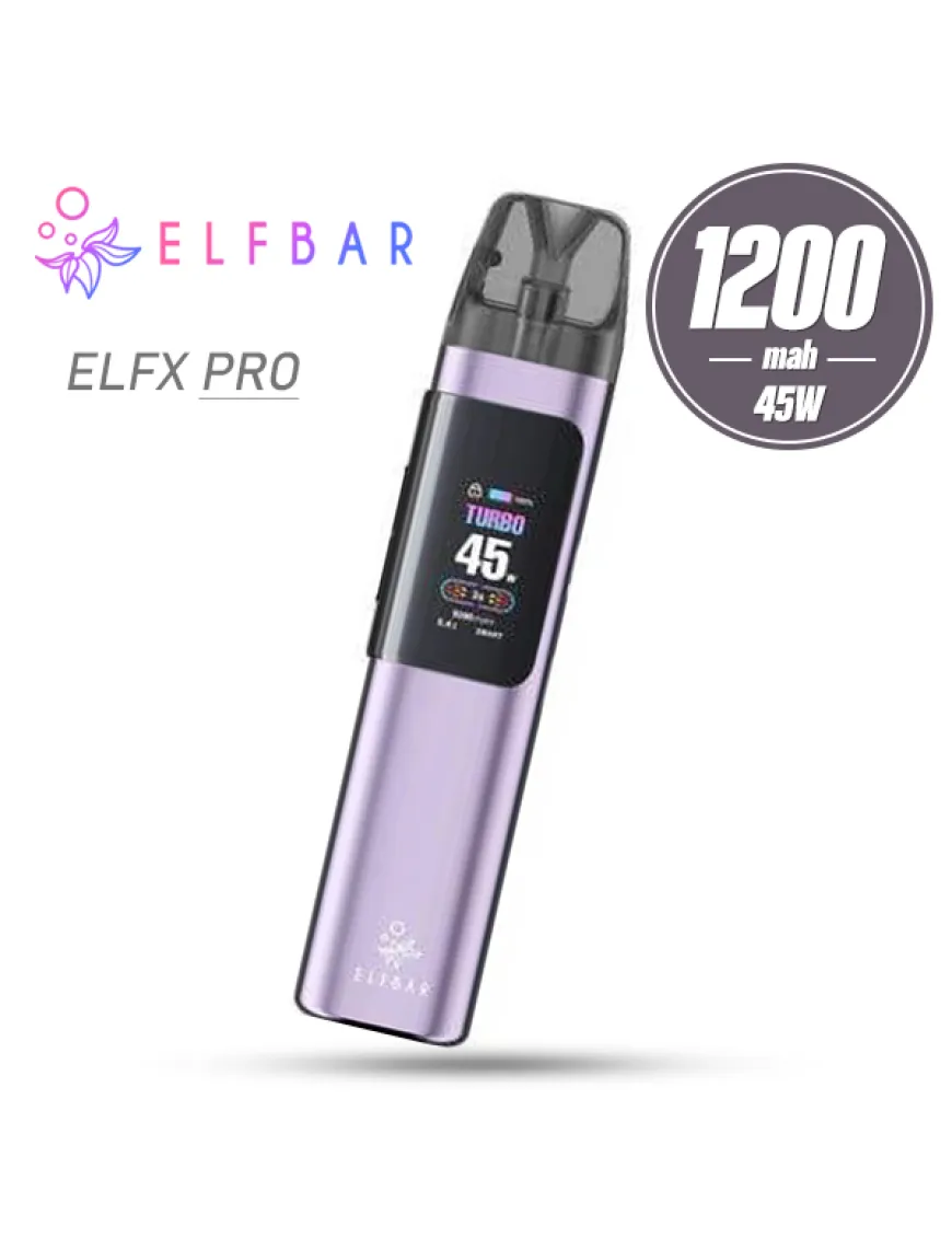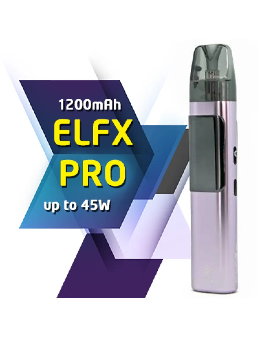 Elf Bar ELFX Pro Pod Kit 1200 мАг - повноцінна Pod система з фірмовим оформленням, великим запасом автономності та зручним конструктивом від відомої компанії Elf Bar. Новинка отримала міцний корпус з алюмінієвого сплаву у вигляді стіка. У батарейному блоці пристрою розміщено джерело живлення на 1200 мАг, що заряджається через роз'єм USB Type-C, струмом 2А. Головною фішкою ELFX Pro є U-подібний дисплей, який ніби оперізує стік із трьох боків. На лицьовому боці кольоровий варіант для контролю основних показників, на зворотному боці - також кольоровий, проте вже винятково для виведення динамічного RGB-підсвічування. Працює Pod система в режимі варіватт з вельми пристойним діапазоном налаштування потужності від 5 до 45 Вт у двох режимах: Turbo і Eco. Інтерфейс новинки багатий двома клавішами - активація досягається за кнопкою і за затяжкою. Друга ж кнопка призначена виключно для налаштування параметрів роботи системи. Тугість затяжки можна налаштувати повзунком на одній з бічних граней. Комплектна картриджна система представлена у вигляді двох екземплярів з різним опором вбудованого випарника на подвійній сітці. Витратні матеріали оснащені чотирирівневим захистом від протікання, верхньою бічною заправкою і резервуаром на 3 мл.