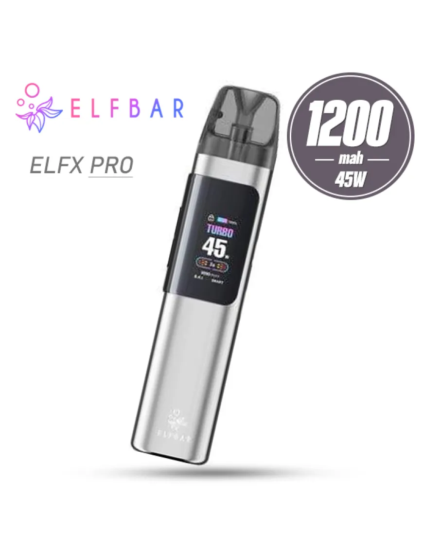 Elf Bar ELFX Pro Pod Kit 1200 мАг - повноцінна Pod система з фірмовим оформленням, великим запасом автономності та зручним конструктивом від відомої компанії Elf Bar. Новинка отримала міцний корпус з алюмінієвого сплаву у вигляді стіка. У батарейному блоці пристрою розміщено джерело живлення на 1200 мАг, що заряджається через роз'єм USB Type-C, струмом 2А. Головною фішкою ELFX Pro є U-подібний дисплей, який ніби оперізує стік із трьох боків. На лицьовому боці кольоровий варіант для контролю основних показників, на зворотному боці - також кольоровий, проте вже винятково для виведення динамічного RGB-підсвічування. Працює Pod система в режимі варіватт з вельми пристойним діапазоном налаштування потужності від 5 до 45 Вт у двох режимах: Turbo і Eco. Інтерфейс новинки багатий двома клавішами - активація досягається за кнопкою і за затяжкою. Друга ж кнопка призначена виключно для налаштування параметрів роботи системи. Тугість затяжки можна налаштувати повзунком на одній з бічних граней. Комплектна картриджна система представлена у вигляді двох екземплярів з різним опором вбудованого випарника на подвійній сітці. Витратні матеріали оснащені чотирирівневим захистом від протікання, верхньою бічною заправкою і резервуаром на 3 мл.