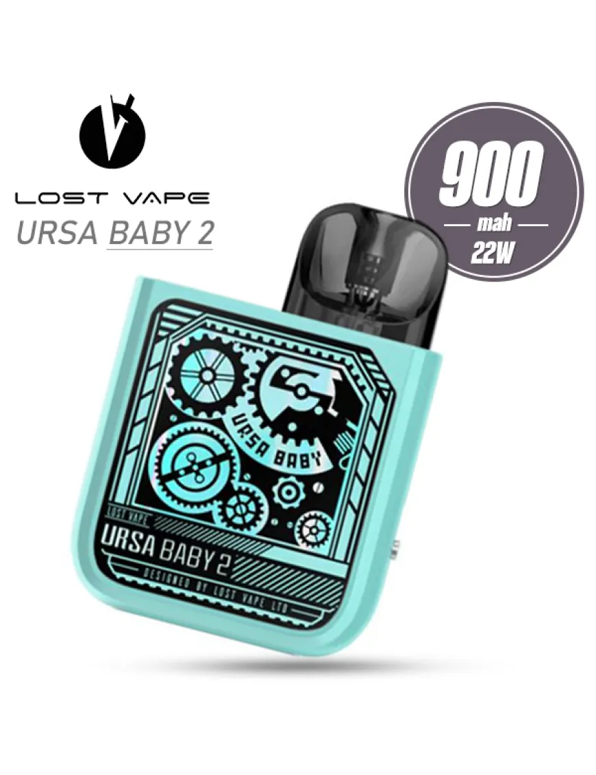 Lost Vape Ursa Baby 2 Pod Kit 900 мАч - компактна Pod система, оснащена потужним вбудованим акумулятором і розрахована на використання картриджів серії Ursa. Форма пристрою трохи нагадує сірникову коробку, його габарити становлять 49 х 69 х 17.5 мм. Нижні кути закруглені, завдяки чому девайс зручно тримати в руці. Матеріалом для виготовлення корпусу слугує міцний пластик, тому його вага незначна і становить усього 48.5 грамів, а ще поверхня дуже гладенька та приємна на дотик. Передня і задня панелі мають власний малюнок, одна з панелей слугує не лише прикрасою для вейпа, а й індикатором для відстеження рівня заряду. Живлення Lost Vape Baby 2 забезпечується вбудованим акумулятором ємністю 900 мАг, зарядка здійснюється за допомогою роз'єму USB Type-C, розташованого на нижньому торці пристрою. Активація пристрою відбувається під час затягування. Комплектні картриджі з вбудованими випаровувачами на 0.6 і 0.8 Ом, вміщують в себе 2.5 мл і утримуються в пристрої за допомогою магнітів. Для заправки картриджа його необхідно вийняти його з батарейного блоку, відкрити силіконову заглушку і залити рідину.