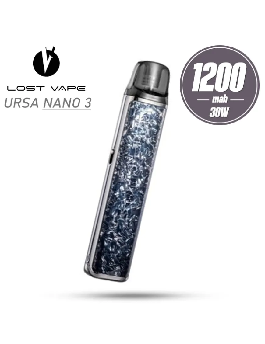 Lost Vape Ursa Nano 3 Pod Kit 1200 мАг - компактна POD-система, оснащена потужним акумулятором і регулятором затяжки. Корпус пристрою виконаний із цинкового сплаву і має форму приплюснутого стіка без гострих граней. Зовнішній вигляд девайса досить скромний: на одному з бічних торців розташовані повзунок регулювання потоку повітря і індикатор подій, на нижньому торці - порт зарядки. Pod система активується виключно при затягуванні і видає потужність в діапазоні від 5 до 30 Вт. За підлаштування потужності під опір намотування і безпеку відповідає перевірена плата Quest 2.0. Живлення Ursa Nano 3 забезпечується вбудованим акумулятором на 1200 мАг, зарядка здійснюється за допомогою роз'єму USB Type-C, розташованого на нижньому торці пристрою. У комплект пристрою входять два картриджі з вбудованим випарником на 0,6 і 0,8 Ом з нової лінійки Ursa V2, але залишилася підтримка і попередніх картриджів серії Ursa.