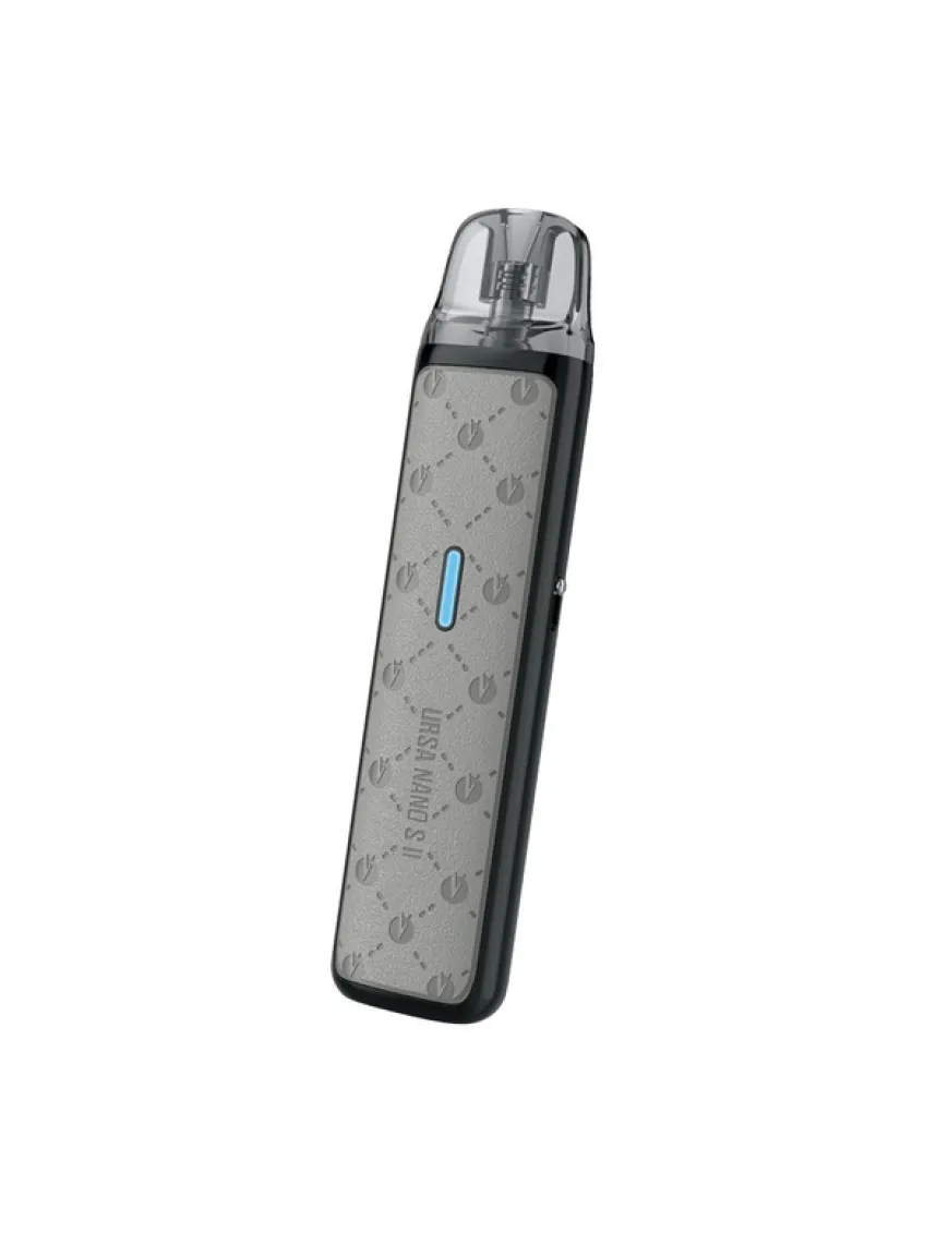 Lost Vape Ursa Nano S2 10th Anniversary Edition Pod Kit 1000 мАг - компактна POD-система, оснащена акумулятором середньої місткості, розрахована на роботу на постійній потужності та призначена для використання змінних картриджів з вбудованими випаровувачами. Пристрій має форму приплюснутого стіка, дуже компактний і легкий, зроблений з глянцевого пластику, зі вставками з еко-шкіри. Корпус має максимально простий вигляд: назва фірми ззаду, назва моделі спереду й індикатор по центру. В елементах конструкції також все дуже скромно: на одному з бічних торців порт зарядки через Type-C і отвір забору повітря, на другому торці повзунок регулювання затяжки. Жодних кнопок немає, пристрій працює тільки від затяжки. Живлення Ursa Nano S2 забезпечується вбудованим акумулятором, ємністю 1000 мАг, зарядка проводиться за допомогою роз'єму USB Type-C, струмом 1А. У комплект пристрою входить один картридж з лінійки Ursa V2 з вбудованим випаровувачем на 0.8 Ом і збільшеним терміном служби, а також ємним баком на 2.5 мл. Залишилася підтримка і попередніх картриджів серії Ursa.