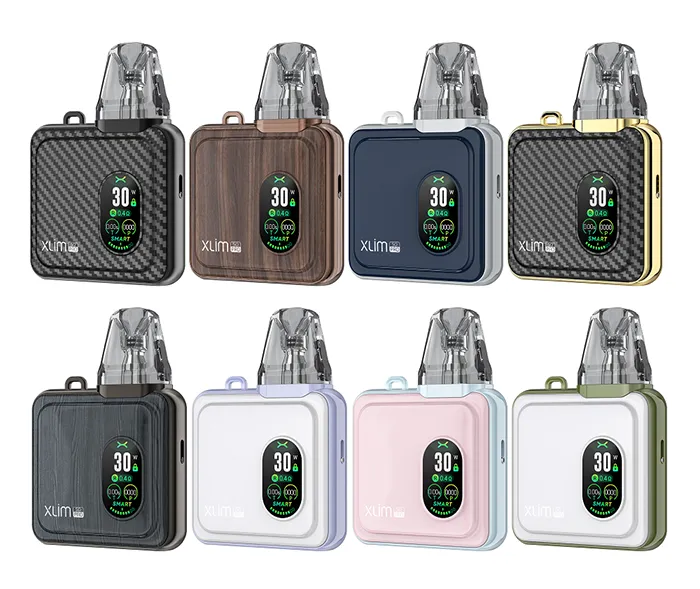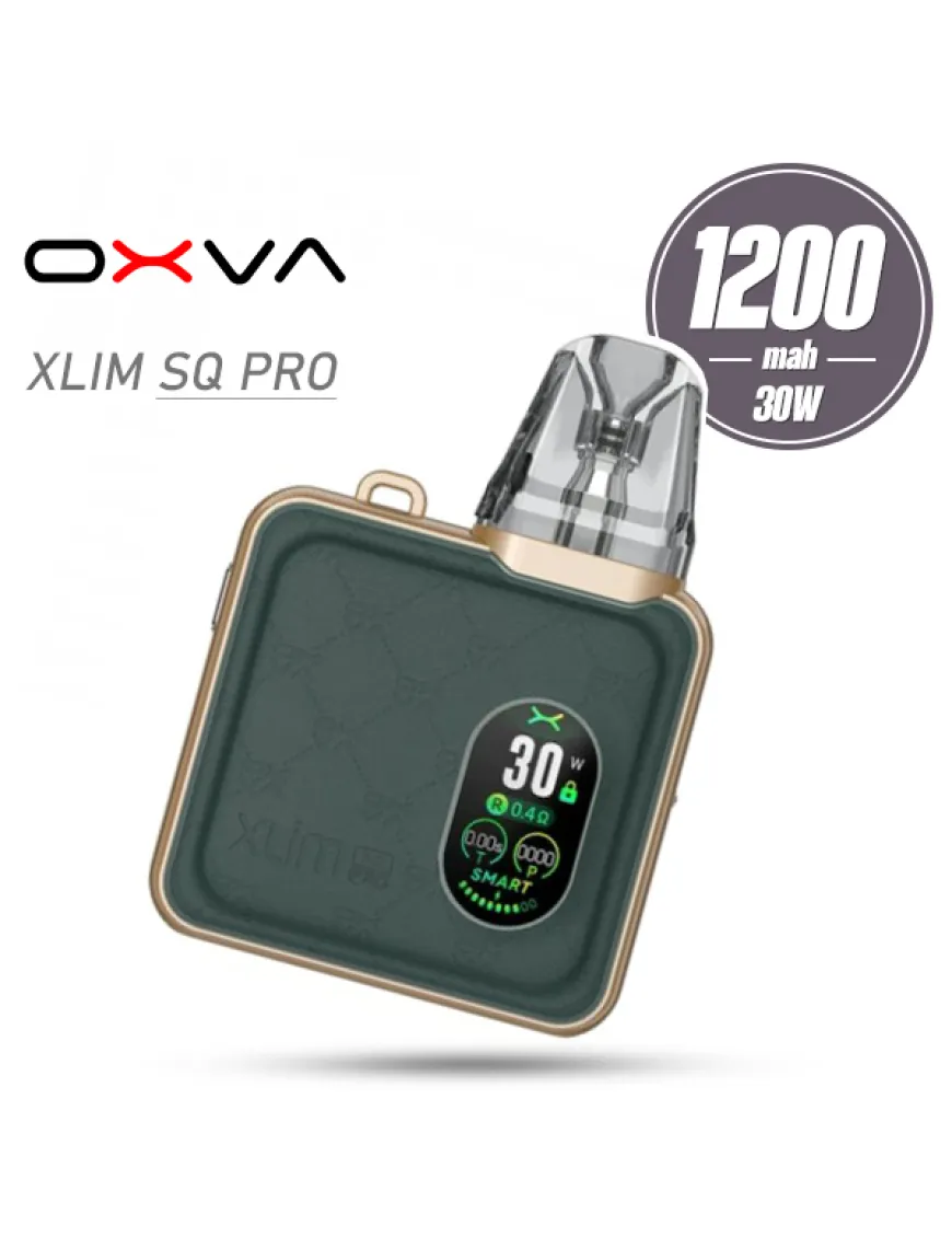OXVA XLIM SQ Pro Pod Kit 1200 мАч - мініатюрна Pod система з інформативним кольоровим інтерфейсом, регульованою потужністю і підтримкою картриджів серії XLIM. Пристрій отримав квадратний корпус з легкого сплаву і полімерів, який легко ховається в долоні, залишаючи зверху лише ергономічний мундштук ховається в долоні, залишаючи зверху лише ергономічний мундштук змінного картриджа. На лицьовій стороні розташований овальний кольоровий дисплей 0.96», регулювання інтенсивності затягування реалізовано за допомогою акуратного повзунка на одній з боковин пристрою. На іншій боковині розташована кнопка активації та сучасний роз'єм USB Type-C. За управління відповідає функціональна плата з налаштованим кольоровим інтерфейсом, двома режимами роботи і діапазоном потужності від 5 до 30 Вт. Активацію девайса здійснюється натисканням кнопки або за затяжкою. Джерелом живлення виступає вбудований акумулятор, ємністю 1200 мАг. Зарядка здійснюється через USB Type-C струмом у 2А. Картриджна система незмінна - це пристойна кількість витратних матеріалів різних ревізій з вбудованими випаровувачами на сітці. В комплект пристрою увійшли два оновлені екземпляри OXVA XLIM Top Fill Cartridge зі збільшеним ресурсом роботи і бічним, верхнім заправленням.