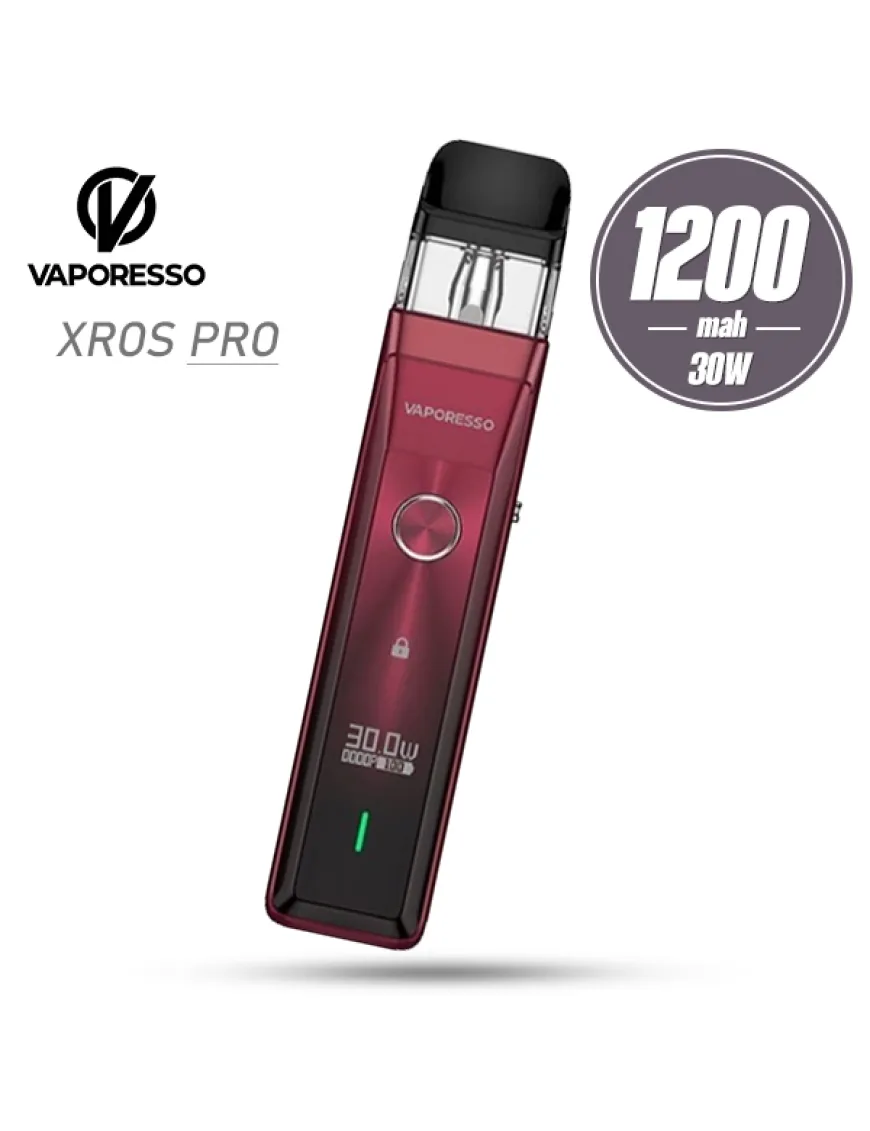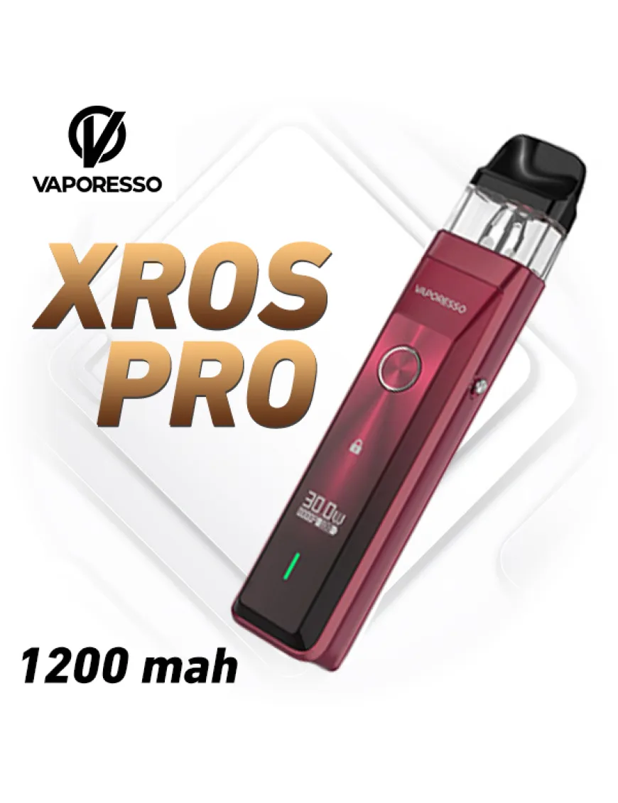 Vaporesso XROS PRO 1200 мАг - Pod система середніх розмірів, з ємним акумулятором, швидкою зарядкою і з підтримкою картриджів XROS Series. Новий пристрій отримав витягнутий прямокутний корпус з алюмінієвого сплаву в лаконічному, але досить оригінальному стилі. На лицьовому боці встановлена кругла кнопка активації, трохи нижче розмістився невеликий монохромний дисплей, а ще нижче розташувався LED бар зі світлом, яке можна налаштувати. Тильна сторона оснащена повзунком регулювання обдування, на одному з торців передбачили зручний елемент швидкого блокування пристрою. Активація пристрою відбувається як під час затягування, так і за допомогою кнопки. Важлива особливість Pod системи, що вона працює під управлінням усім відомого чипа Axon, що підтримує максимальну потужність в 30 ват і вдосконалений режим Super Pulse, а також режим економії. Живлення Vaporesso XROS PRO забезпечується вбудованим акумулятором, ємністю 1200 мАг, а це досить пристойний показник. Зарядка акумулятора проводиться за допомогою роз'єму USB Type-C, струмом 2А. Одна з ключових особливостей Vaporesso XROS PRO Pod Kit в тому, що в нього можна встановлювати будь-які картриджі серії XROS, завдяки чому не виникне складнощів з пошуком витратних матеріалів. Однак для даної новинки, виробником був створений новий картридж з вбудованим сітковим випаровувачем вельми низького опору - 0.4 Ом (в комплекті 2 шт). Новий картридж отримав ємність 3 мл, швидке верхнє заправлення і фірмову систему захисту від протікання.
