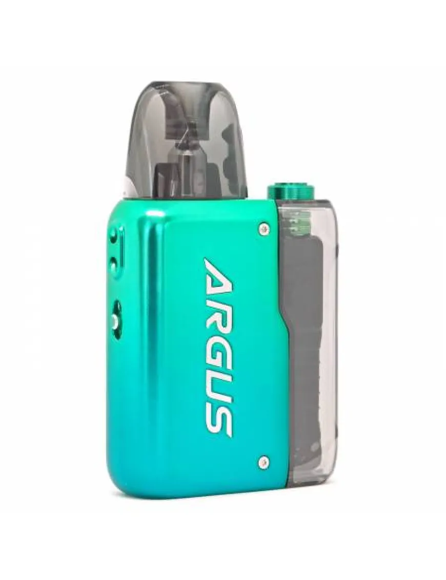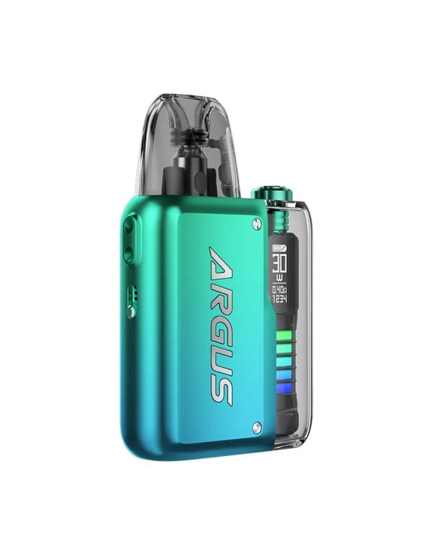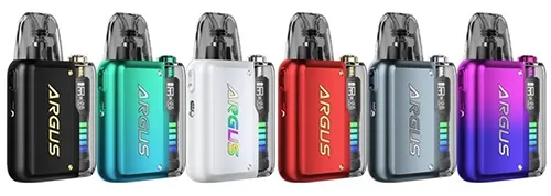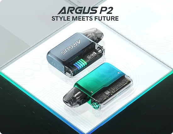 Voopoo Argus P2 Pod Kit 1100 мАг - Pod система невеликого розміру з потужним акумулятором, екстравагантним дизайном, варіативною потужністю і настроюваним обдувом.Мініатюрний цинковий корпус виконаний у прямокутній формі зі зручними округленими кутами.Металева частина корпусу з'єднується з пластиковою прозорою вставкою, під якою видно керуючі елементи плати, невеликий монохромний дисплей і LED-бар.Зверху розташована невелика кругла кнопка активації і скоба для шнурка.На одному з бічних торців встановлений повзунок регулювання затягування. Живлення Voopoo Argus P2 Pod Kit забезпечується вбудованим акумулятором ємністю 1100 мАг, заряджання акумулятора здійснюється за допомогою роз'єму USB Type-C, розташованого на нижньому торці корпусу.Передбачаються кілька режимів роботи: Power, SPT, NOR і ECO.Затискання кнопки дає змогу вимикати або активувати LED-бар.У комплект пристрою входить один картридж з вбудованим випаровувачем з нової лінійки Ursa V2, але залишилася підтримка і попередніх картриджів серії Ursa. Активується девайс за допомогою датчика затяжки або за допомогою натискання кнопки. Картриджна система повністю оновлена - це витратні матеріали на вбудованих випаровувачах Argus Top Fill Cartridge зі збільшеним «життєвим циклом», стандартно скромною місткістю 2 мл і бічною, проте тепер швидкодоступною, заправкою. Voopoo Argus P2 повністю сумісний з попередніми картриджами серії Argus.