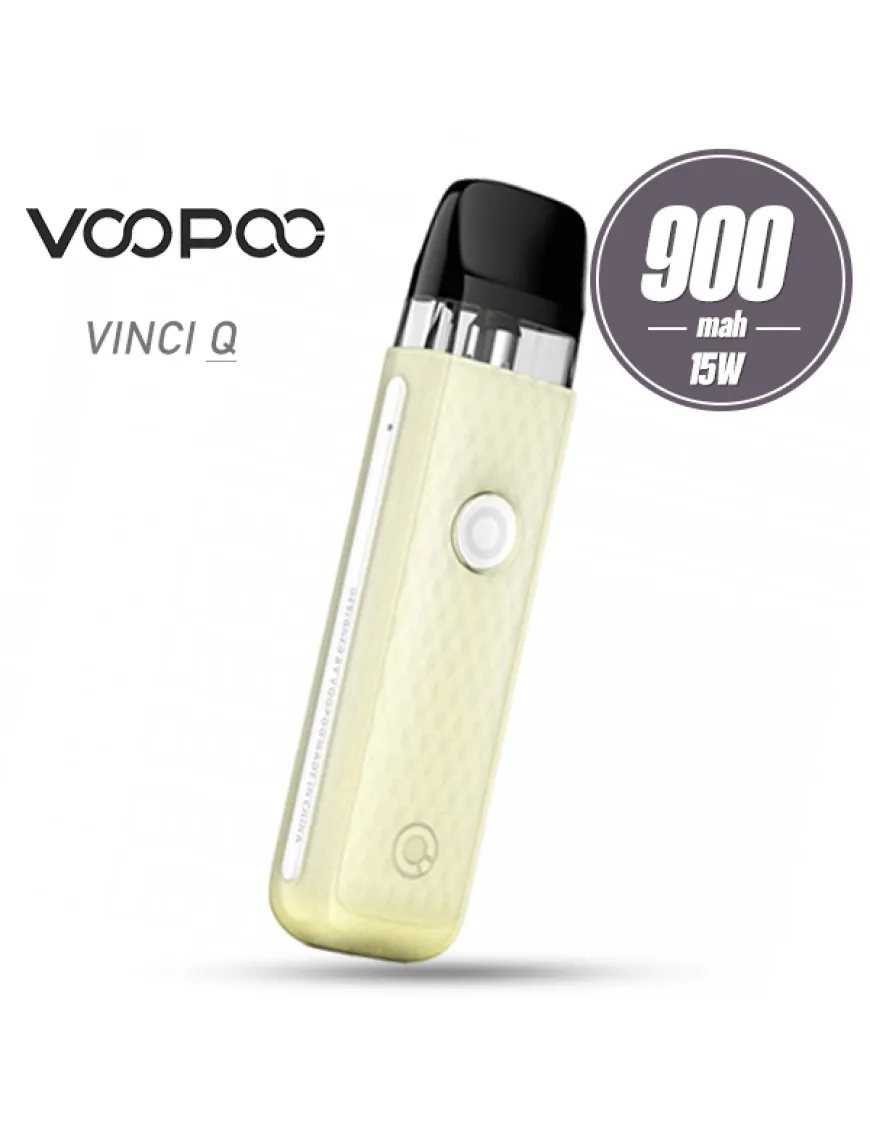 Voopoo Vinci Q Pod Kit 900mah - компактна Pod система із вбудованим акумулятором середньої ємності, варіативною активацією та працює зі змінними картриджами із серії Vinci. Pod система упакована в легкий, але міцний двошаровий корпус із термостійких полімерів. Лицьова сторона має круглу кнопку активації з вбудованим індикатором. З обох боків розподілили дві маленькі перфорації, які відповідають за забір повітря. Окрім того, на одному з торців розмістили USB-порт. Активація пристрою здійснюється як після натискання кнопки, так і безпосередньо при затягуванні. Мінімалістична плата має необхідну систему безпеки, а також автоматичну оптимізацію потужності під опір випарника в межах від 11 до 15 Ватів. За живлення відповідає вбудований акумулятор ємністю 900 мАг.Комплектний картридж з інтегрованим випарником сітки, опором 1.2 Ом, має верхню заправку. Voopoo Vinci Q Pod сумісний з картриджами від Vinci Pod, Drag Nano 2 Pod та Vinci Royal Edition Pod. Обсяг резервуара не змінився і, як і раніше, становить 2мл.