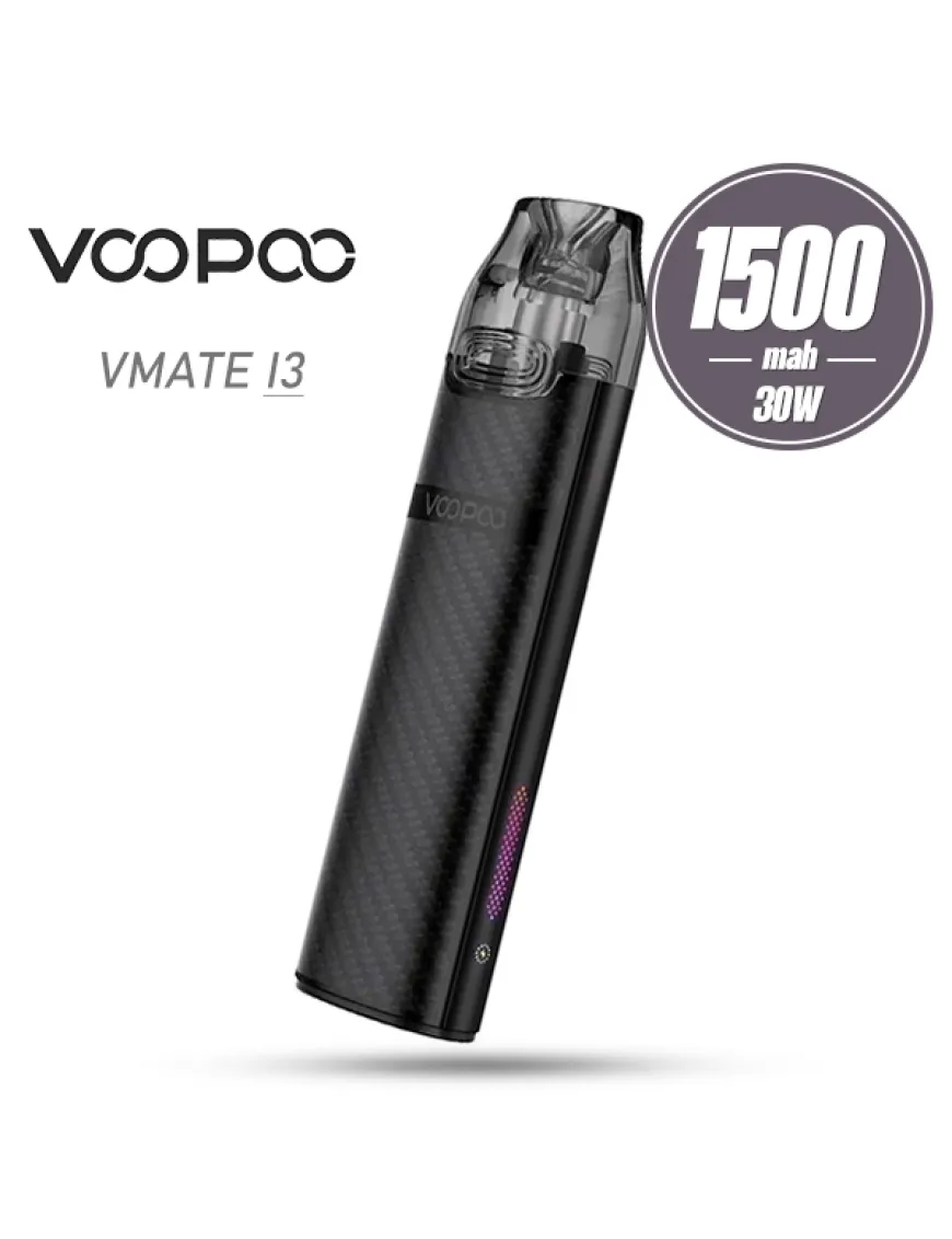 Voopoo VMATE i3 Pod Kit 1500 мАг - чергова оновлена модель лінійки VMATE від компанії Voopoo. Корпус новинки виконаний у впізнаваному корпоративному стилі з алюмінієвого сплаву у формі того ж приплюснутого стіка. Інтерфейс VMATE i3 безкнопковий – активація досягається виключно затяжкою. В якості індикатора подій тепер використовується неоновий LED-лайтбар, який одночасно виконує декоративну функцію і інформує про заряд акумулятора. Розташований індикатор на одній з боковин пристрою. Регулювання інтенсивності затяжки реалізовано за допомогою акуратного повзунка на одній зі сторін пристрою. Завдяки збільшеним габаритам творцям вдалося реалізувати більш ємний вбудований елемент живлення на 1500 мАг, а також збільшити максимальну потужність до 30 Вт. Заряджається пристрій за допомогою сучасного роз'єму USB Type-C, розташованого на нижньому торці пристрою, струмом 2А. Картриджна система вже знайома - це витратні матеріали на вбудованих випарниках VMATE Top Fill Cartridge з швидкою бічною заправкою, хорошою місткістю, тривалим терміном служби, а також вдосконаленою системою захисту від протікання. Новинка комплектується картриджем VMATE Top Fill Cartridge 0,7 Ом 3 мл і повністю сумісна з усіма витратами серій VMATE Top Fill і VMATE V2.