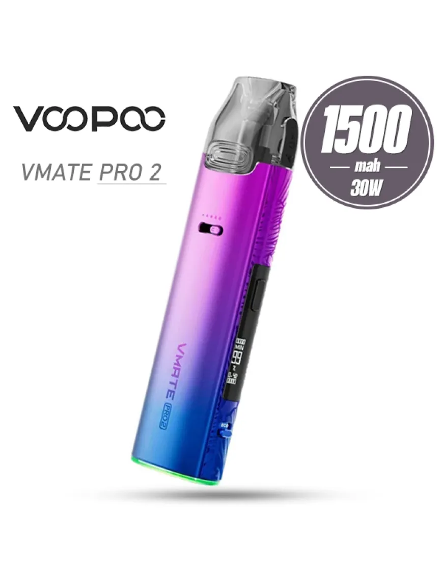 Voopoo VMATE Pro 2 Pod Kit 1500mAh - чергове поповнення лінійки VMATE від компанії Voopoo. Зовнішній вигляд навряд чи здивує шанувальників бренду – той самий приплюснутий стік середніх розмірів, корпус якого виконаний з цинкового сплаву і прикрашений логотипом, візерунками і різною обробкою цього самого металу, а також на нижньому торці навколо порту зарядки з'явився обідок з індикацією. На одній з бічних граней все також розташований дисплей і кнопка управління, проте під дисплеєм з'явився ще один елемент – важіль перемикання режимів паріння – ECO і POWER. Екран за замовчуванням відображає опір, потужність, кількість затяжок, заряд акумулятора. При одноразовому натисканні кнопки управління змінюється інформація на екрані. Важіль перемикання режимів працює приємно і супроводжується індикацією, розташованою по колу біля основи девайса. У режимі POWER користувач самостійно виставляє потужність роботи девайса, а в режимі ECO, за заявою виробника, пристрій інтелектуально розпізнає звички користувачів в парінні і динамічно регулює потужність. Це гарантує відсутність компромісів щодо смаку, при цьому дійсно досягаючи енергоефективності – економлячи батарею, так і рідину, ефективно скорочуючи витрати. Живлення Voopoo VMATE Pro 2 забезпечується вбудованим акумулятором, ємністю 1500 мАг, зарядка акумулятора проводиться за допомогою роз'єму USB Type-C, розташованого на нижньому торці пристрою, струмом 2А. На лицьовій стороні розташований акуратний повзунок регулювання тугості затяжки. Повзунок рухається плавно, але з невеликим зусиллям. Активація пристрою досягається виключно затяжкою. Картриджна система вже знайома – це витратні матеріали на вбудованих випарниках VMATE Top Fill Cartridge з швидкою бічною заправкою, хорошою місткістю, тривалим терміном служби, а також вдосконаленою системою захисту від протікання. Пристрій комплектується двома картриджами з вбудованими випарниками на сітці, опором 0,4 і 0,7 Ом.