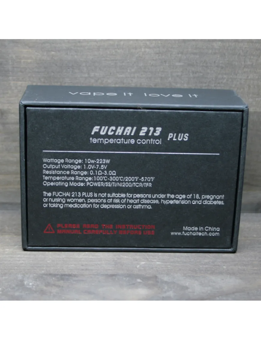Fuchai 213 Plus Mod - бокс мод від відомої компанії Sigelei, що зарекомендувала себе як виробник якісних і надійних товарів на ринку електронних сигарет. Однією з переваг даного пристрою є нестандартний дизайн, і унікальність форми, що виділяє його серед своїх конкурентів. Панель управління виступає на поверхні корпусу, а габарити залишаються невеликими, тим самим роблячи використання пристрою зручнішим та практичнішим. За рахунок свого міцного покриття Fuchai 213 Plus Mod практично не схильний до зносу, а також буде приємний тактильно.