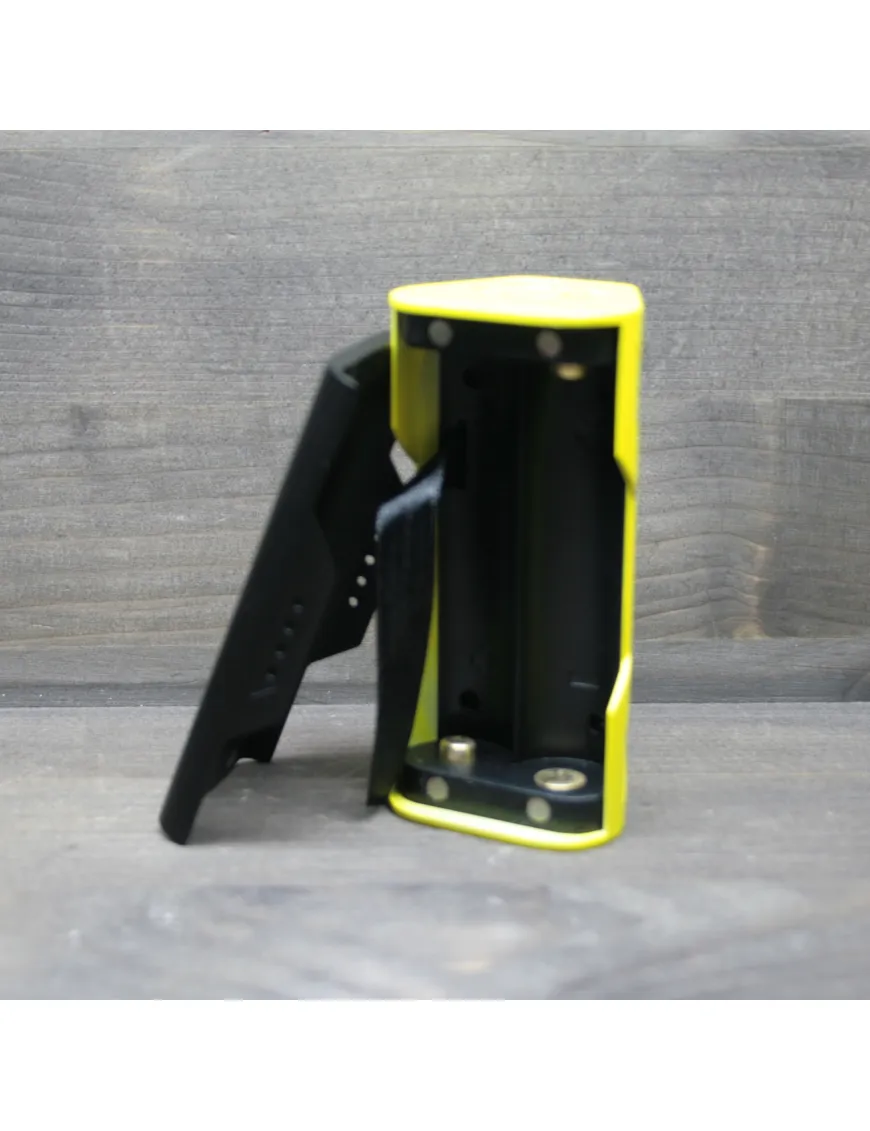 Акумулятори встановлюються у відсік, оснащений магнітною кришкою, яка тримається дуже надійно, не люфтить і не зсувається при випадковому незручному русі. Усі елементи корпусу щільно підігнані один до одного, створюючи відчуття монолітності. Корпус виготовлений із цинкового сплаву, фарба нанесена методом керамічного випалу. Завдяки шорсткої поверхні мод не ковзає в руці, тримати його дуже приємно.