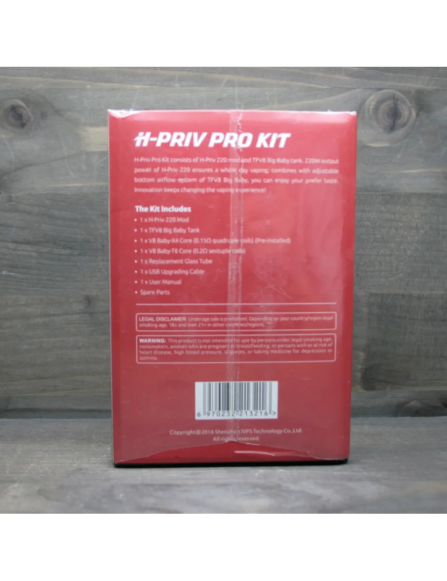 Стартовий набір Smok H-Priv Pro Kit працює від двох акумуляторів, завдяки чому гаджет тривалий час тримає заряд та видає більшу потужність. Висока потужність мода дозволяє встановлювати випарники з показником опору до 0.08 Ом у режимі термоконтролю. Також цей режим дозволяє виставляти температуру від 100 до 300°С. У режимі варіват діапазон опору регулюється в рамках 0.1-3.0 Ом.