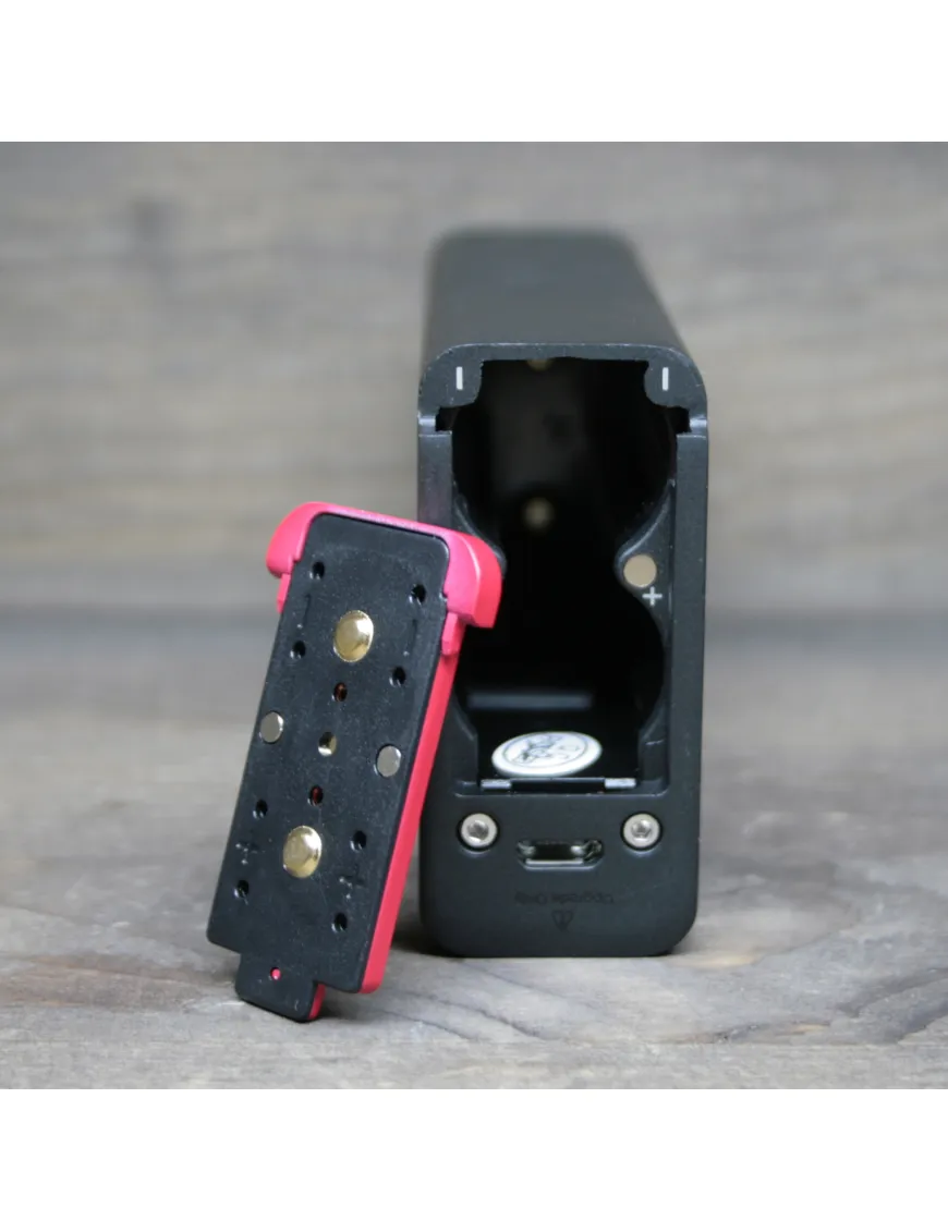 Батарейний відсік H-Priv забезпечує гарну провідність електрики, відмінний рівень вентиляції. На литій кришці зсуву батарейного блоку встановлені магнітні засувки, тому змінювати батареї дуже просто. Біля кришки розташований USB-порт, за допомогою якого можна змінювати прошивку мода. Мод працює від двох акумуляторів формату 18650 (батареї в комплект не входять)