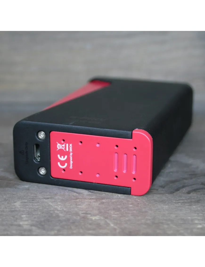 Зовні мод виглядає просто приголомшливо - лаконічно і, водночас, дуже вишукано. Головна особливість оформлення – велика кнопка у вигляді червоного трикутника, яка відповідає за активацію пристрою. Така конструкція дуже зручна – велику кнопку зручно натискати для затягування. Під конектором скромно розташувався логотип виробника. Стандартні кнопки управління винесені на верхню поверхню корпусу, там знаходиться компактний дисплей. Наявність універсального конектора 510 дозволяє використовувати стартовий набір із більшістю сучасних модів.