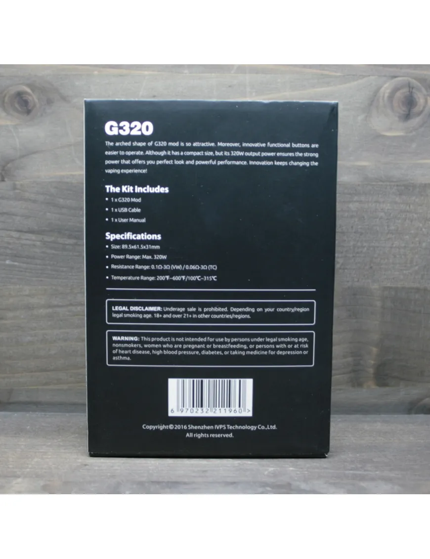 Бокс-мод G320 обладнаний великим (0.96 дюймів) OLED дисплеєм, який дає можливість відстежувати інформацію навіть під час ширяння.