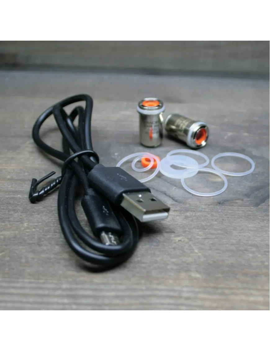 На передній панелі ви знайдете кнопки керування потужністю та інформативний OLED-дисплей. Для заряджання та оновлення прошивки виробник оснастив вейп micro-USB портом. Внизу корпусу є отвори для охолодження.