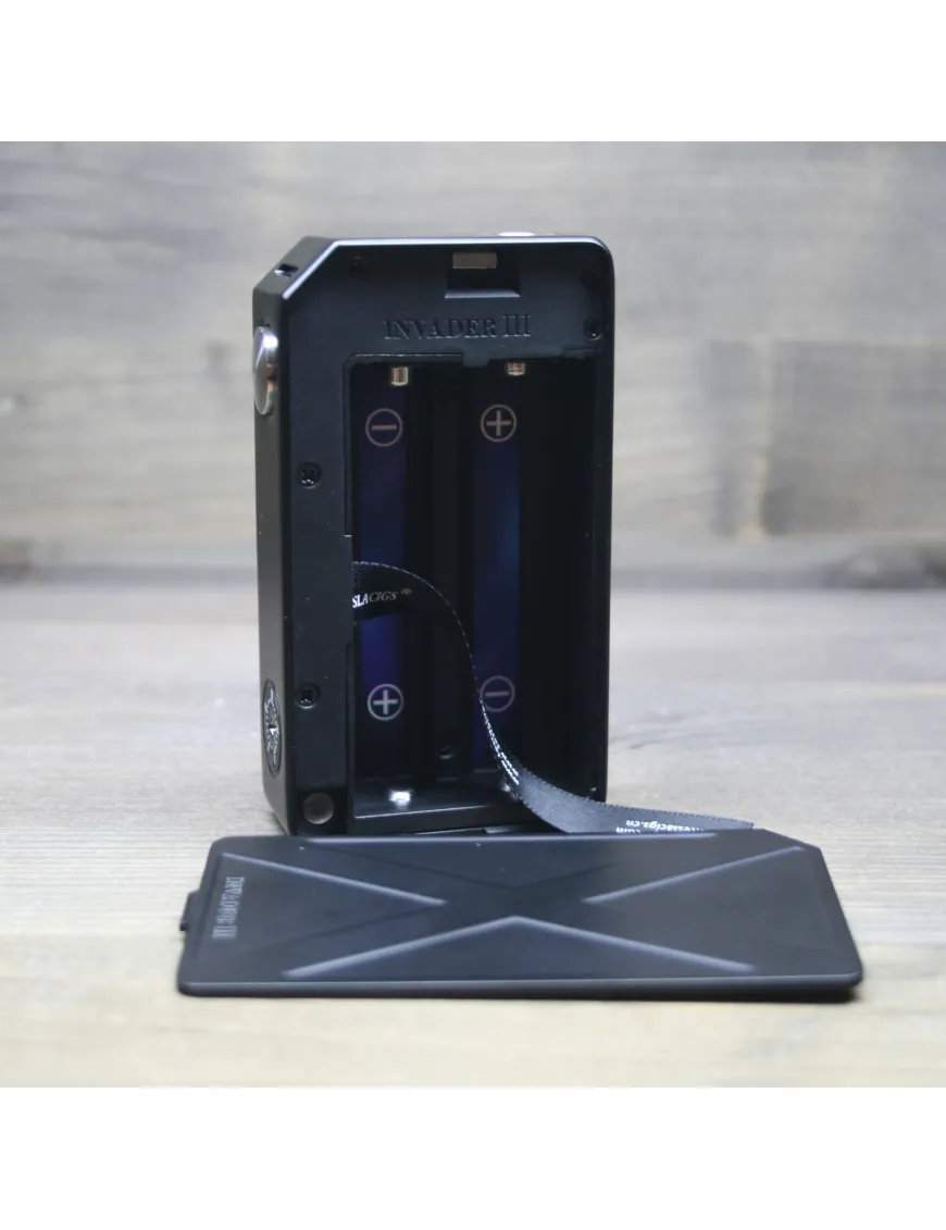 Для роботи пристрою необхідні дві батареї форм-фактора 18650 високої струмовіддачі. Плата здатна витримати 45 А. Мінімальний робочий опір пристрою – 0.1 Ом. Вага мода без батарей – 198 г. Знизу пристрою знаходиться отвір для виведення газів. Підсумовуючи все сказане вище, можна зрозуміти, що Invader III – це незвичайний, але простий у використанні мод. Якщо вам не хочеться паритися з налаштуваннями та обслуговуванням, Invader – те, що вам потрібно.