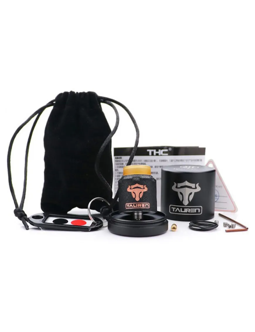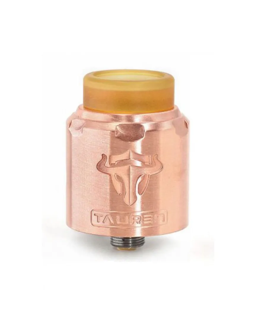 Діаметр Tauren RDA становить 24 мм при висоті 29 мм. Невелика висота атомайзера не випадкова, адже чим коротший паропровід, тим більш насичений смак. Купол виконаний із сплаву міді, база з нержавіючої сталі, дріп тип класичний, 810-й, безорінговий.