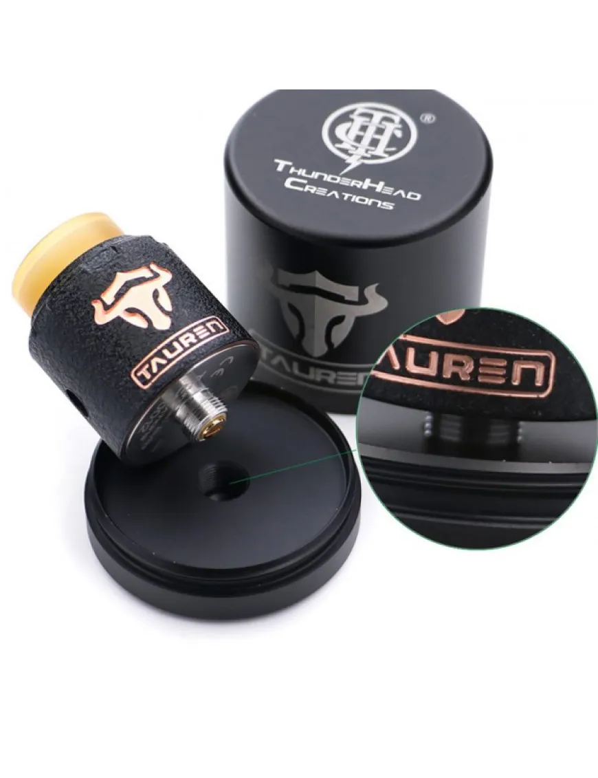 Діаметр Tauren RDA становить 24 мм при висоті 29 мм. Невелика висота атомайзера не випадкова, адже чим коротший паропровід, тим більш насичений смак. Купол виконаний із сплаву міді, база з нержавіючої сталі, дріп тип класичний, 810-й, безорінговий.